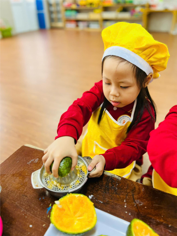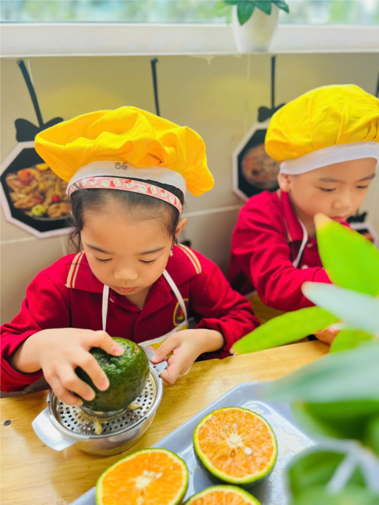 Giờ học trải nghiệm Vắt nước cam của cô và các bé lớp MGL A@