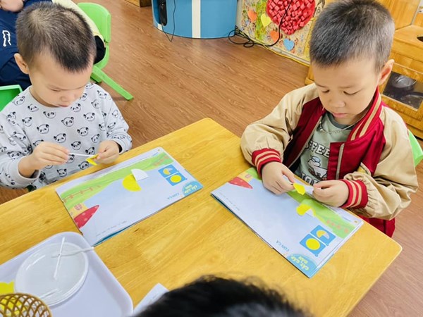Tiết học tạo hình Con chuồn chuồn của cô và các bé lớp MGL A3