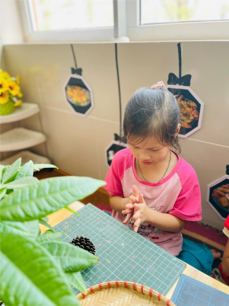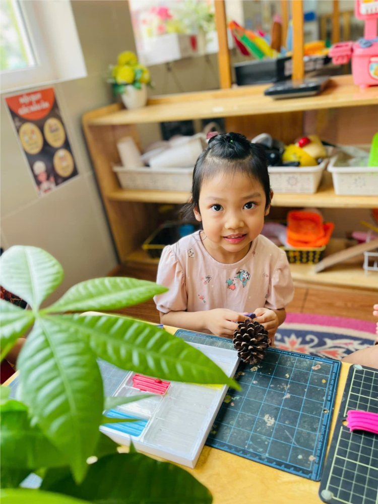 Giờ học tạo hình: Làm chú nhím từ quả thông cùng cô và các bé lớp MGL A2