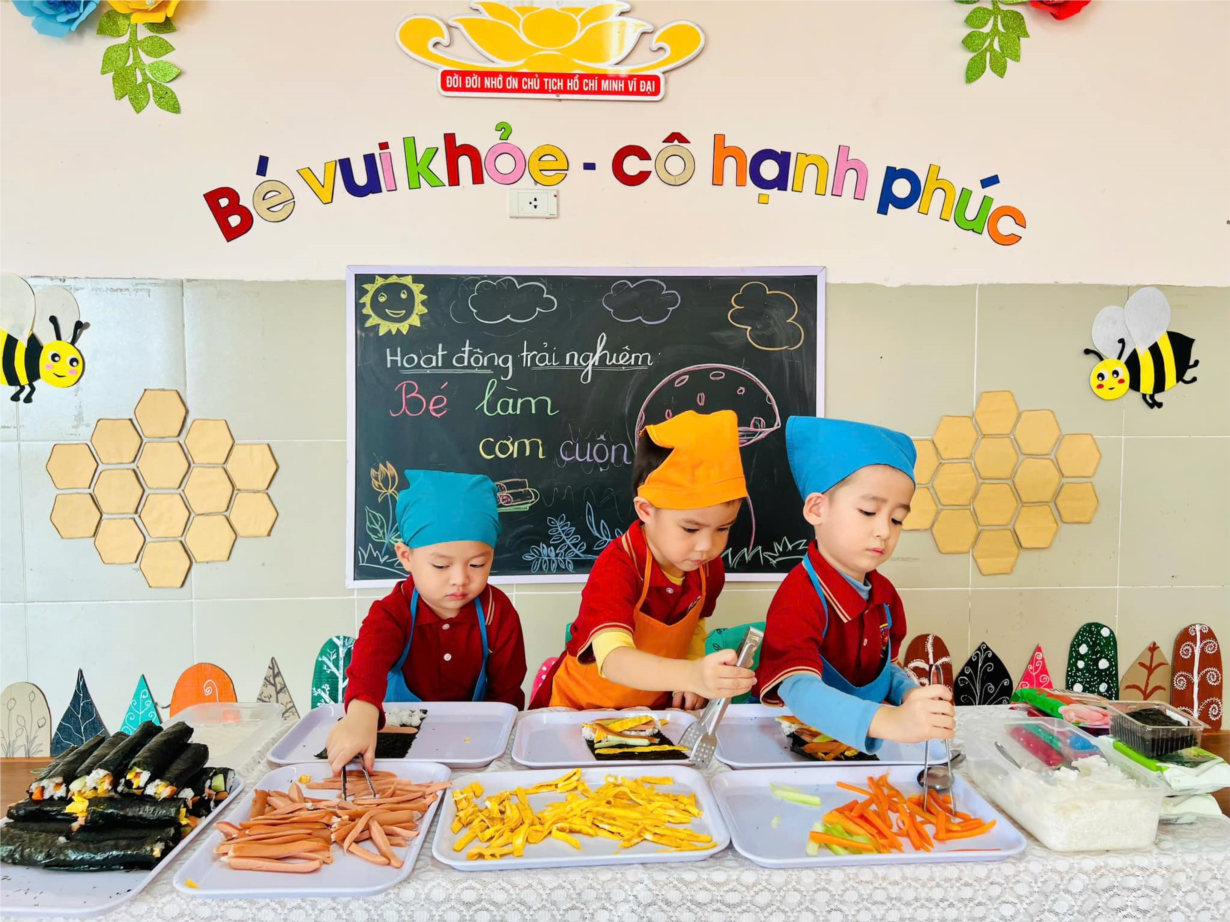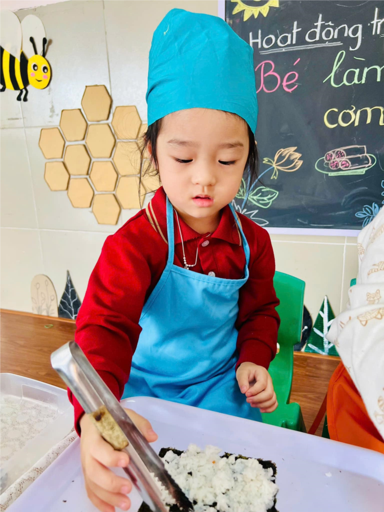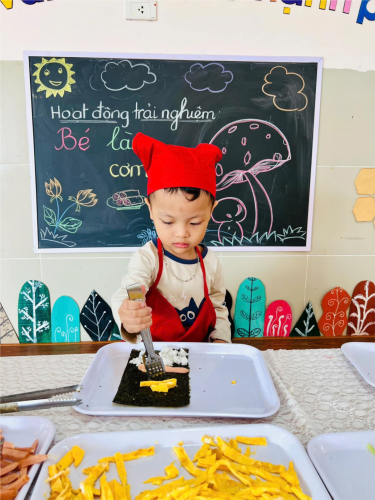 TRẢI NGHIỆM: LÀM CƠM CUỘN KIMBAP” cùng các bạn nhỏ lớp MGB C2