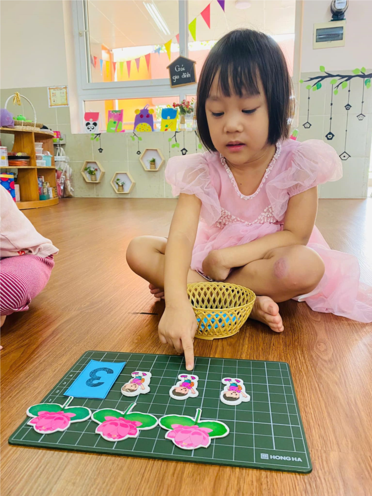 Giờ học Toán “Nhận biết chữ số 3, số lượng và số thứ tự trong phạm vi 3” của các bé lớp MGN B1