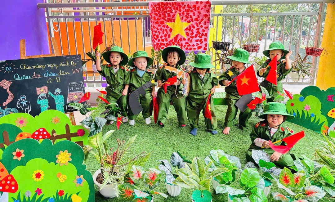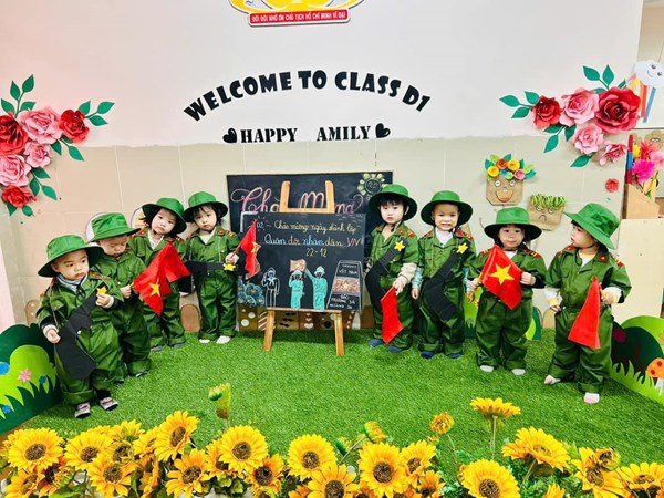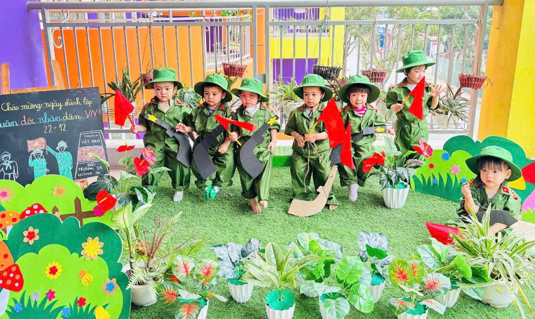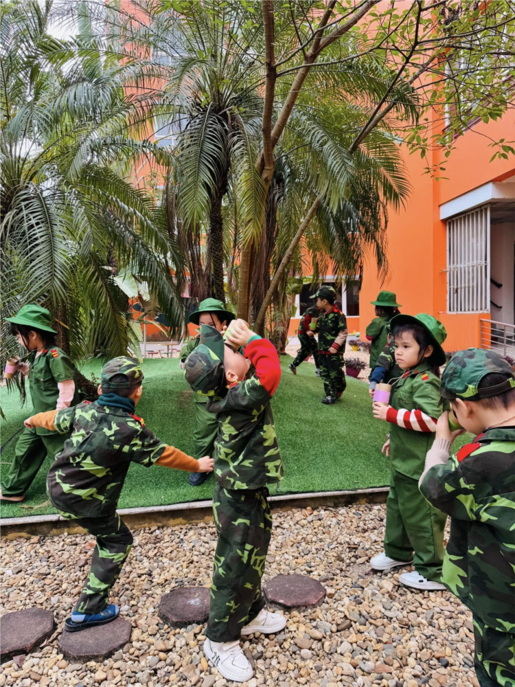 Hướng đến kỷ niệm 80 năm ngày thành lập Quân đội nhân dân Việt Nam 22/12, các bé A3 đã cùng nhau thiết kế những chiếc ống nhòm xinh xắn- 1 vật dụng cần thiết của các chiến sỹ cụ Hồ. Ngoài ra, các bé còn hoá thân vào các chú bộ đội oai phong, mang trong mình trọng trách bảo vệ đất nước trong tương lai!🌺