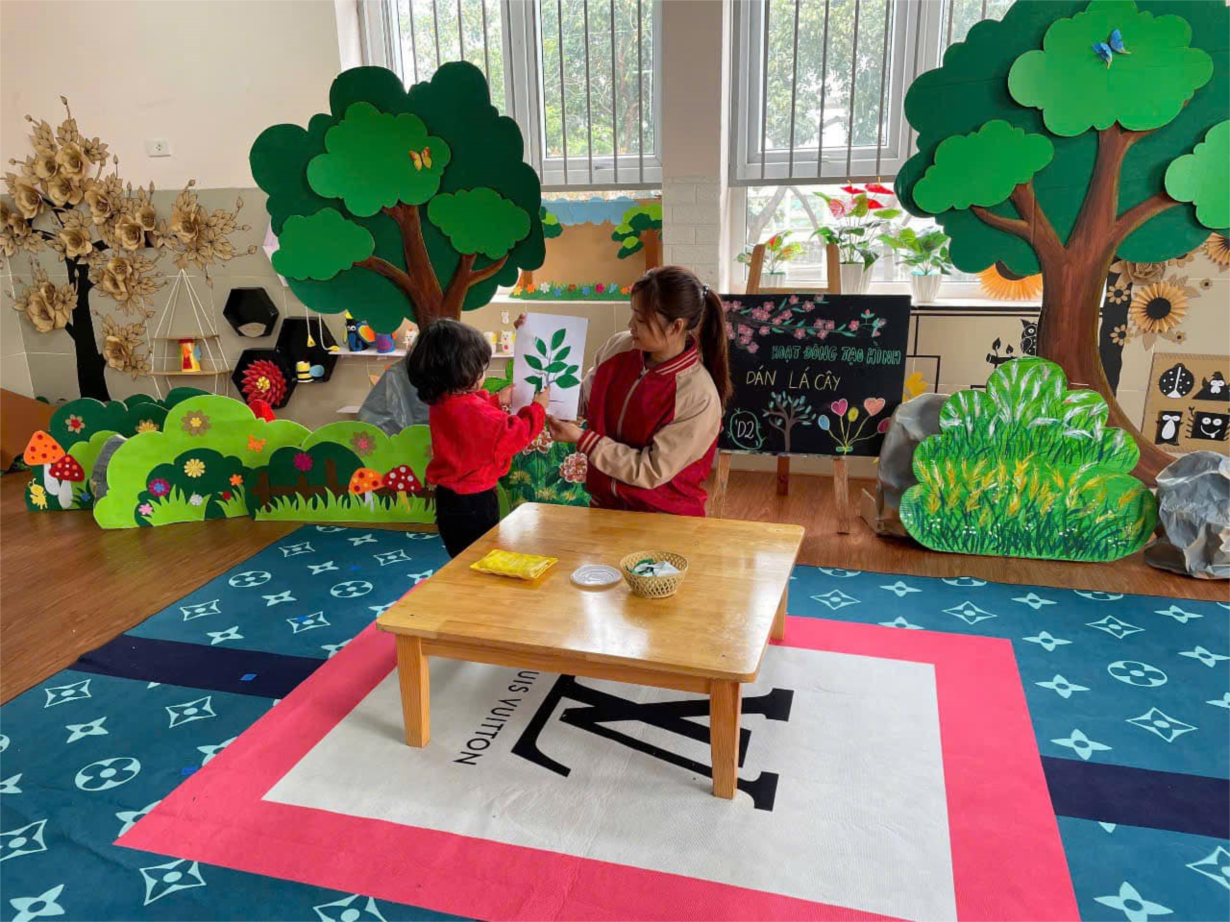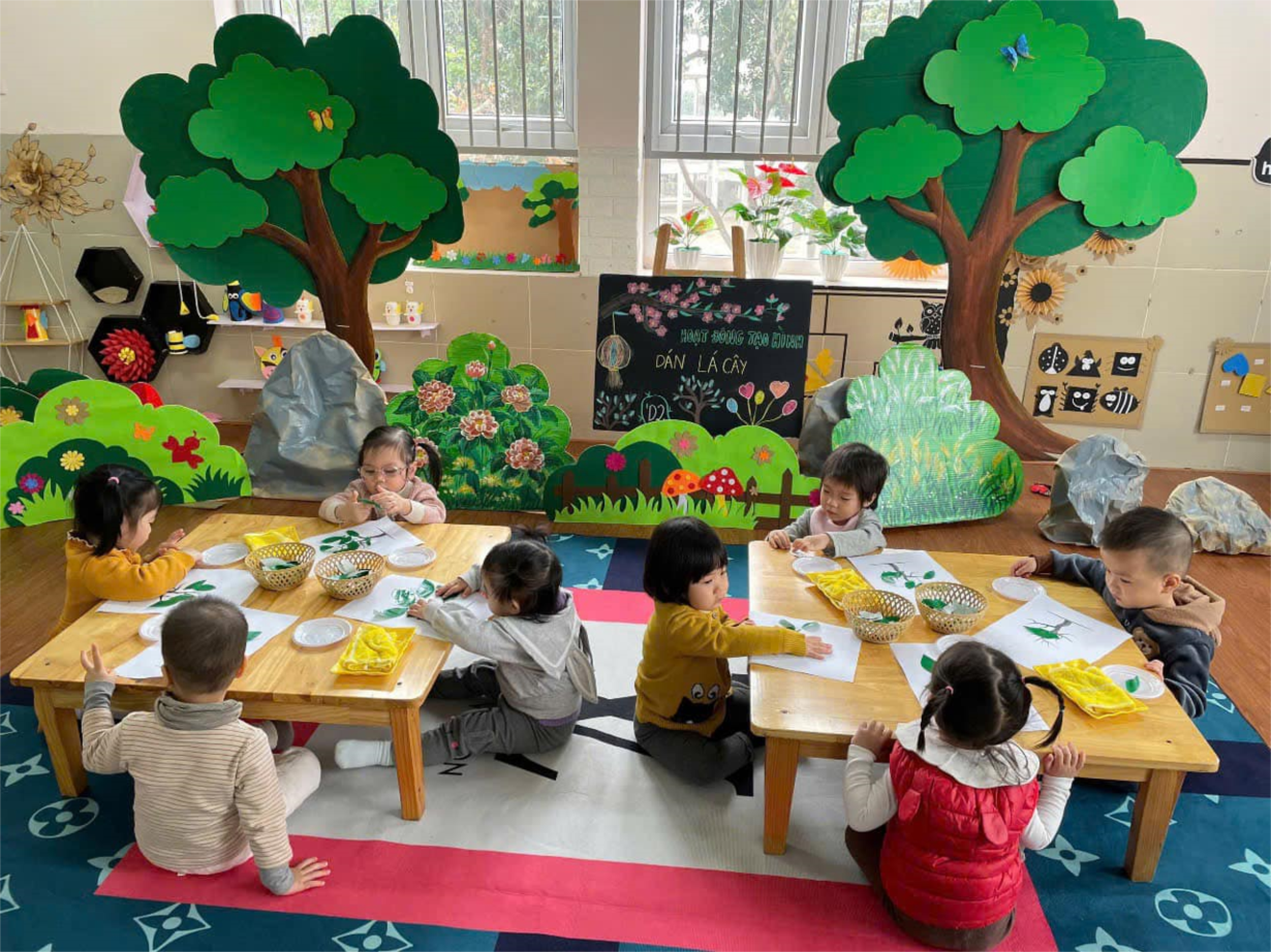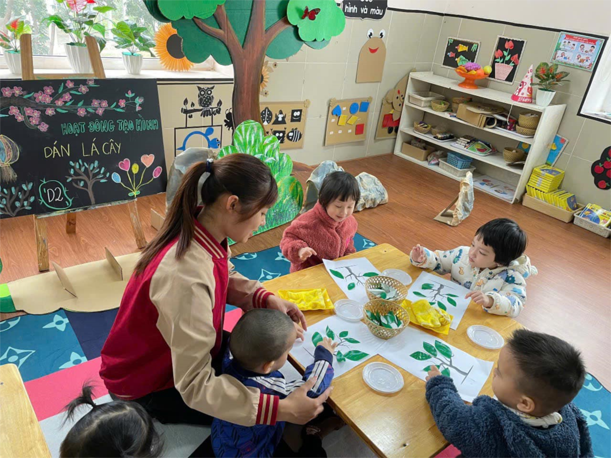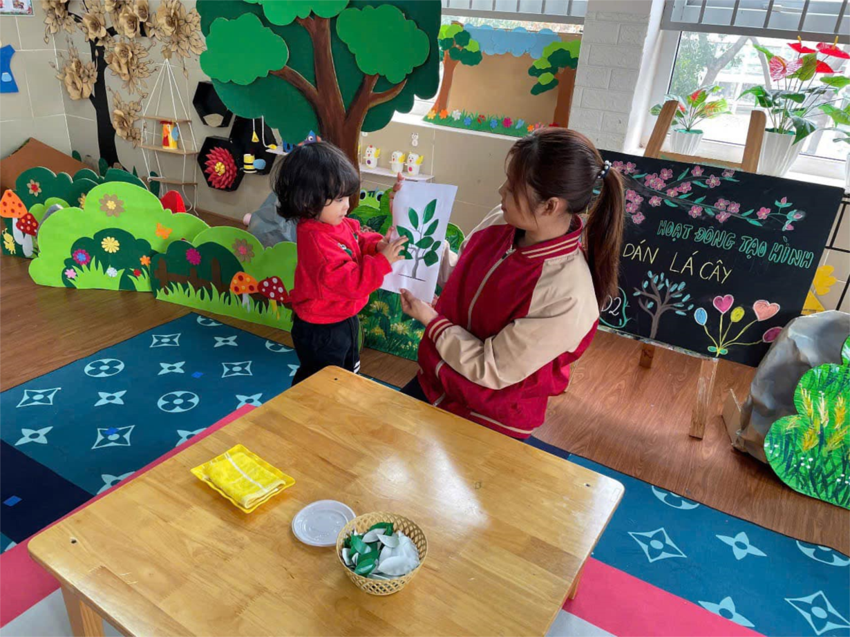 Hoạt động “ Dán lá cây” của các bé lớp NT D2