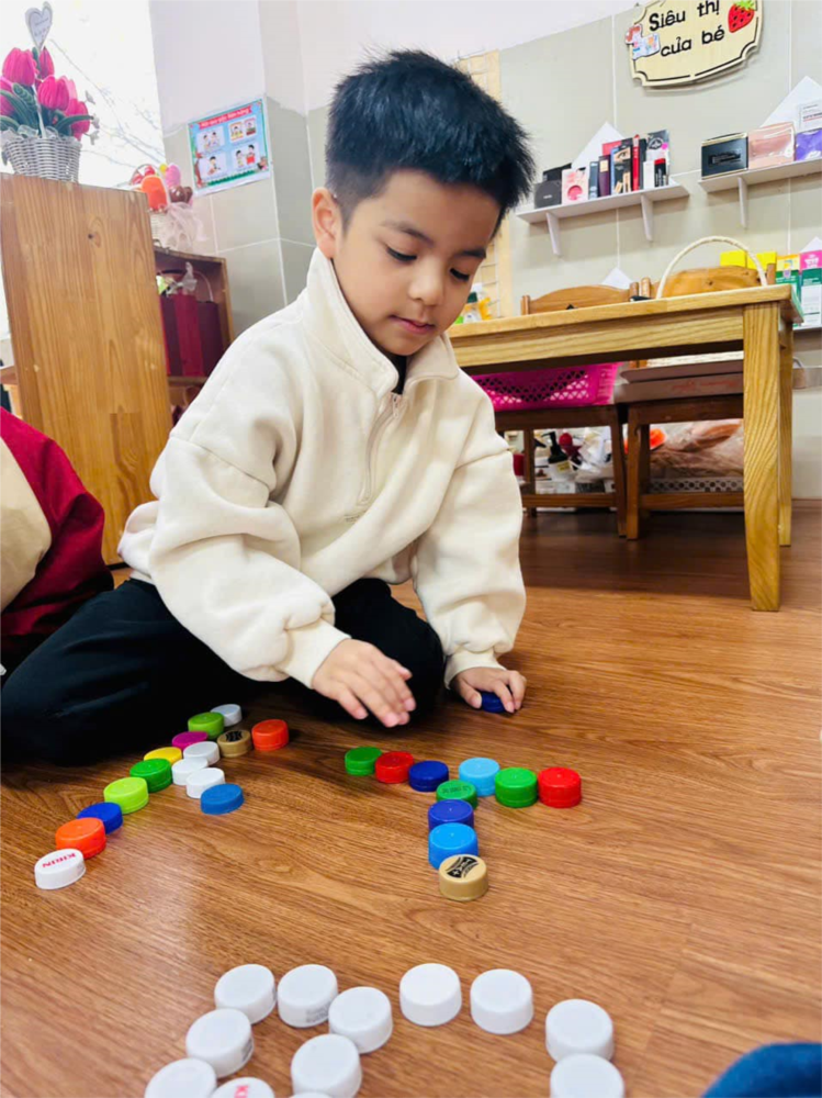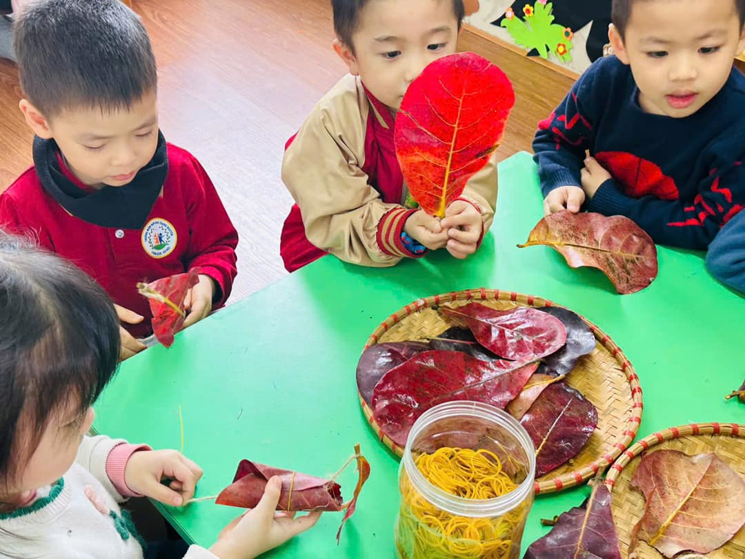 Hoạt động sáng tạo từ các nguyên vật liệu mở như nắp chai, thanh gỗ, hạt gấc, lá gỗ ... của cô và các bé lớp MGN B3
