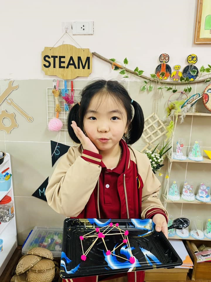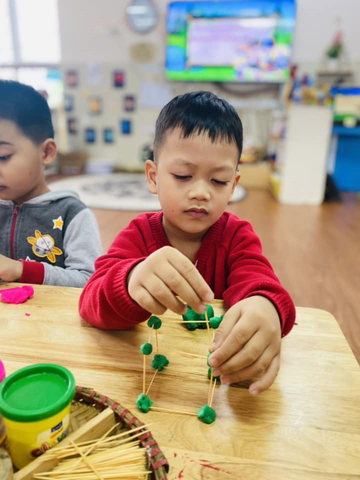 Những hình ảnh đẹp về hoạt động steam : Xây tháp của các bé lớp MGL A2
