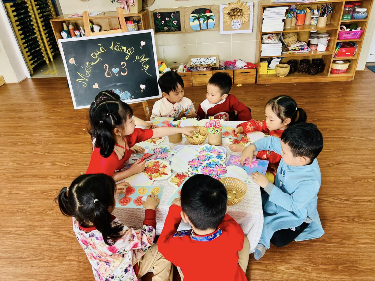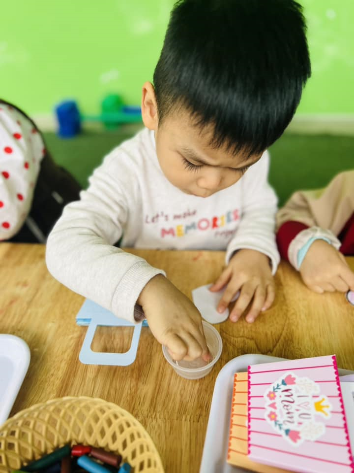 Những hình ảnh đáng yêu của cac bé lớp MGB C2 trong hoạt động làm thiệp tặng mẹ, tặng bà nhân ngày 8/3