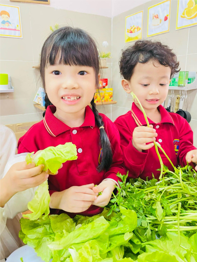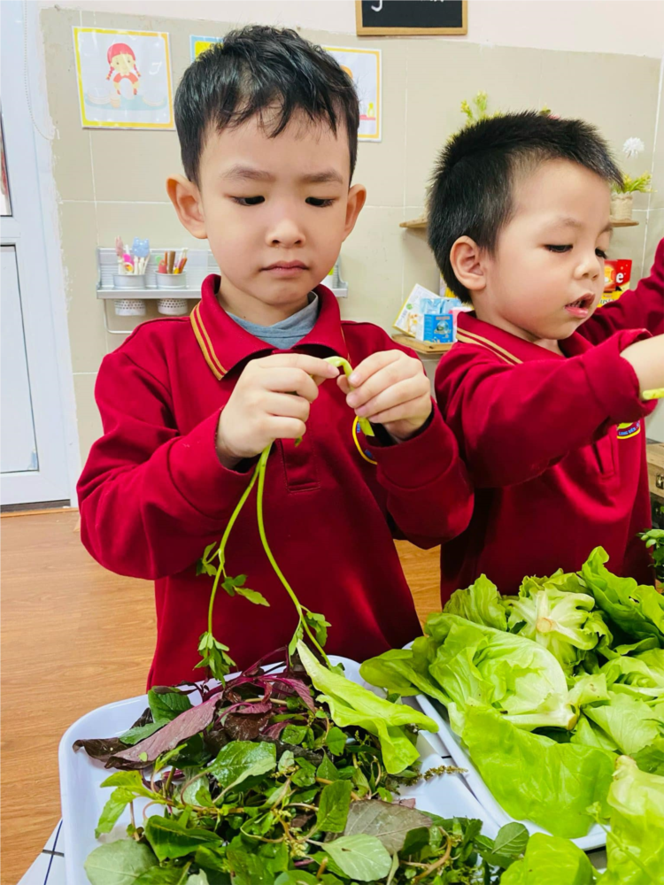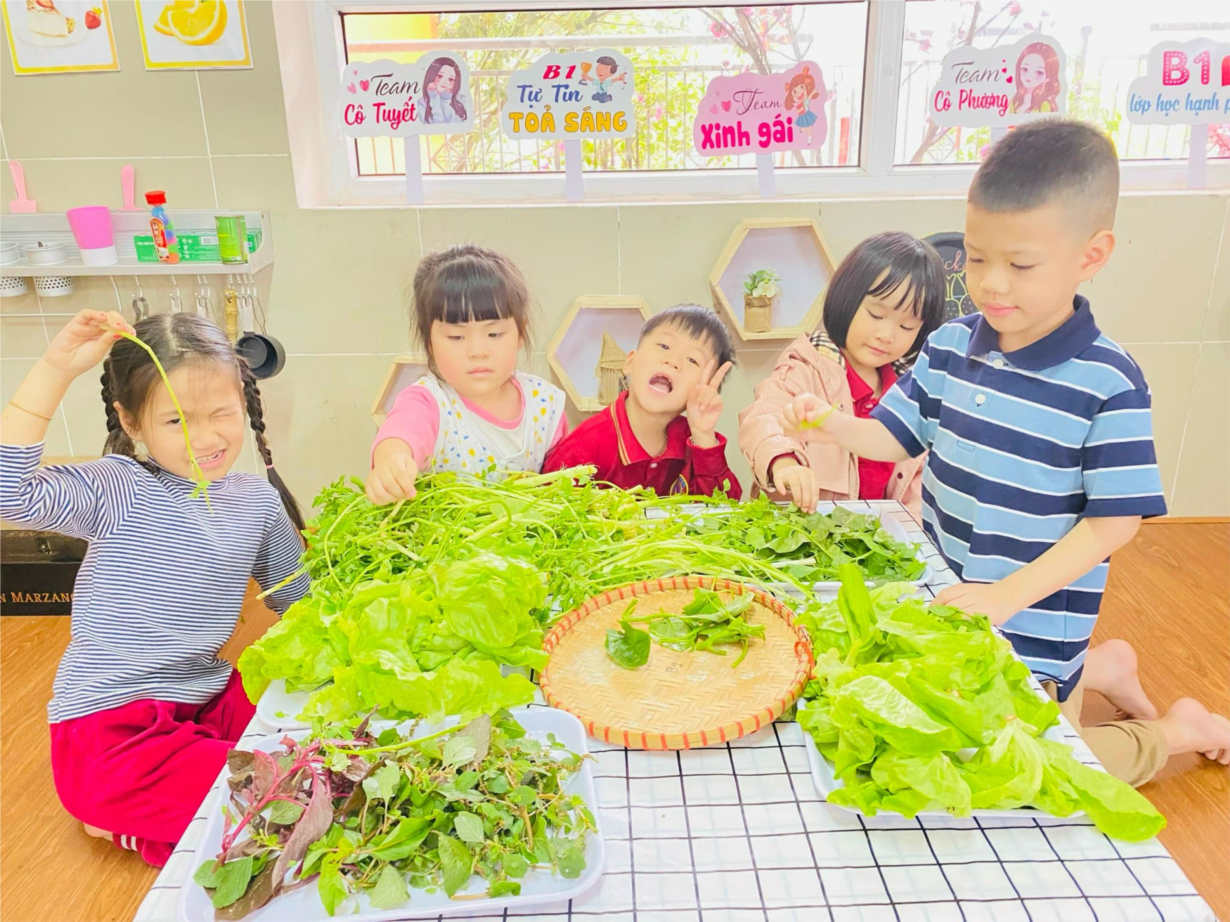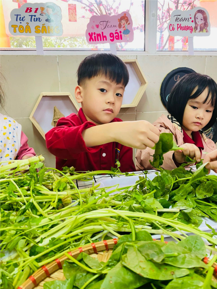 Hoạt động trải nghiệm ký năng sống : Bé nhặt rau của các bé lớp MGN B1