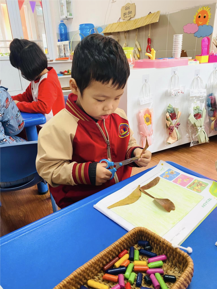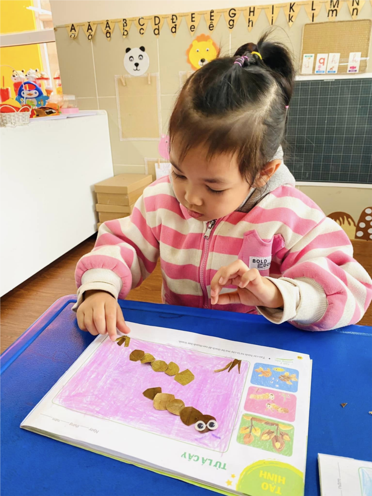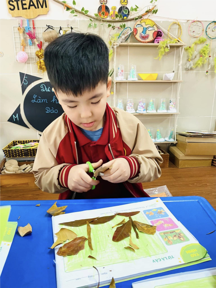 Hoạt động sáng tạo từ lá cây của các bé lớp MGL A2