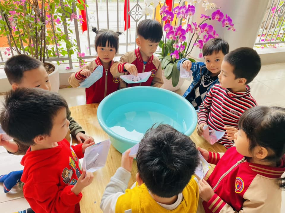Hoạt động tạo hình : " Gấp thuyền giấy" của các bứ lớp MGN B1