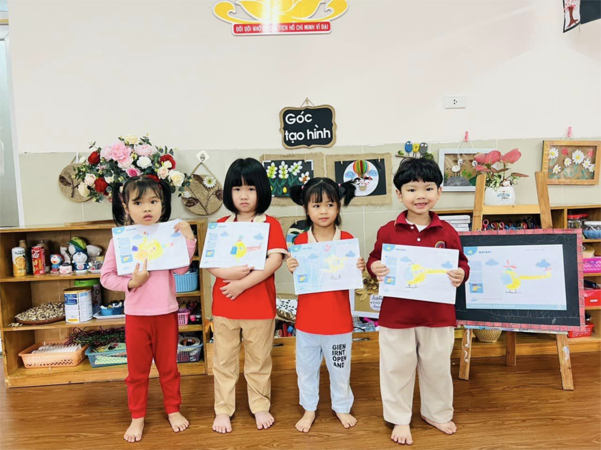 Hoạt động tô màu máy bay của các bé lớp MGB C2