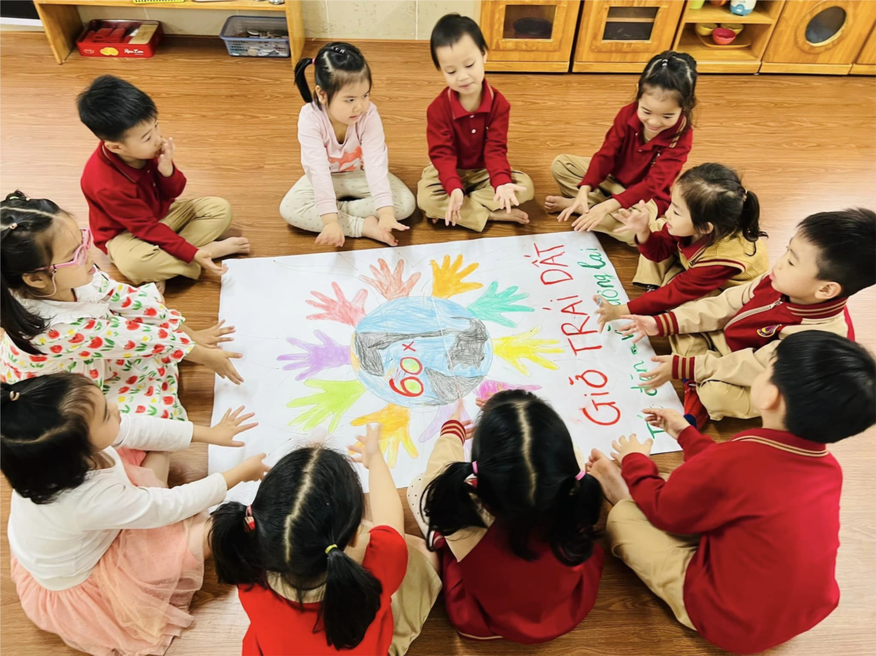 CÔ VÀ TRÒ LỚP B2 TRƯỜNG MẦM NON HOA TRẠNG NGUYÊN HƯỞNG ỨNG GIỜ TRÁI ĐẤT 2024🎉🎉🎉
