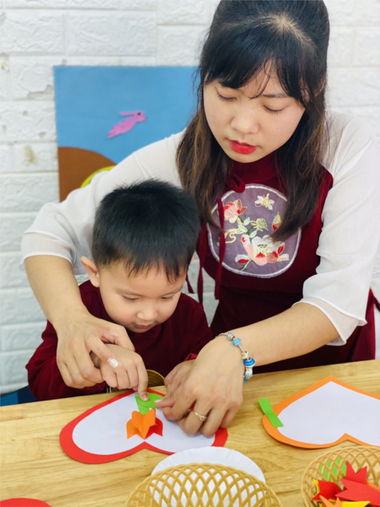 Những hình ảnh đẹp của cô và các bé lớp MGN B2 trong hoạt động làm thiệp tặng mẹ nhân ngày 8/3