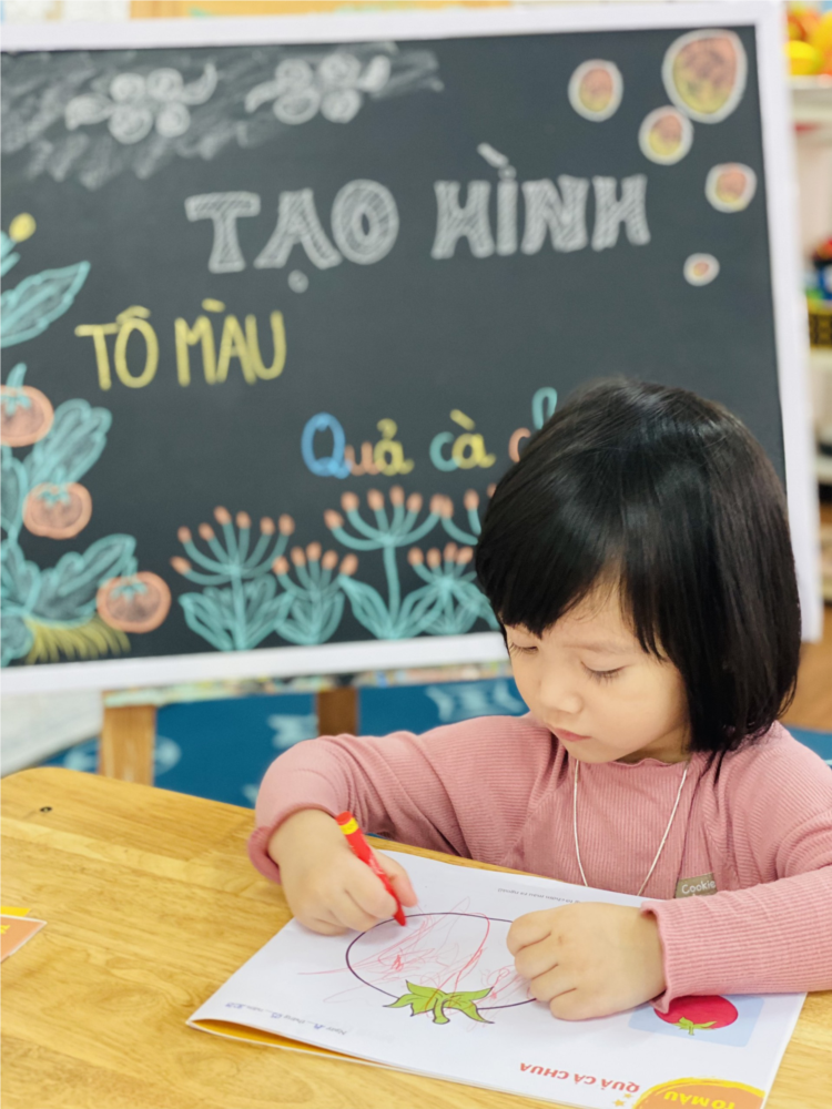 Hoạt động tạo hình : Tô màu quả cà chua của cô và các bé lớp NT D3