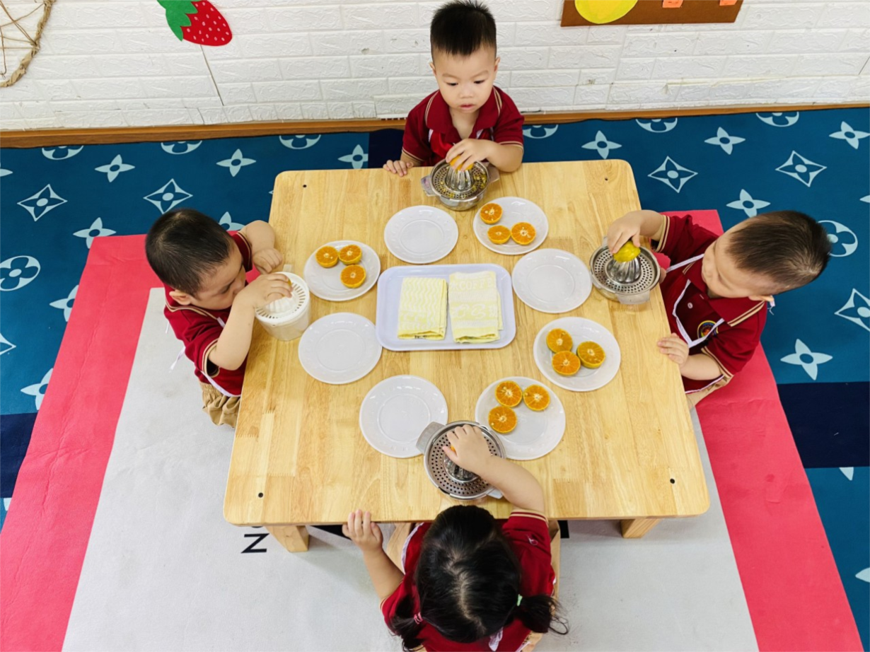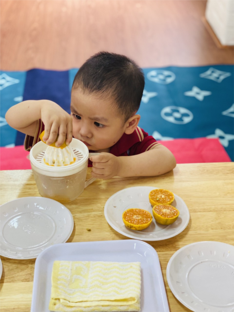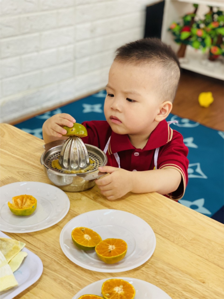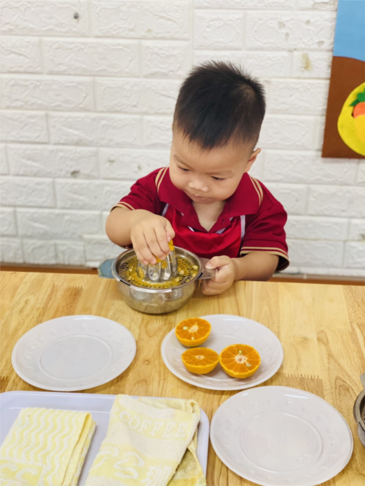 Hoạt động "Vắt nước cam" của các bé lớp NT D3