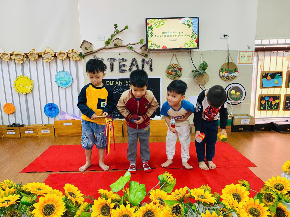 Xin mời các bạn hãy đến với giờ học âm nhạc : " Biểu diễn văn nghệ với chủ đề phương tiện giao thông" của cô và trò lớp MGN B1 nhé