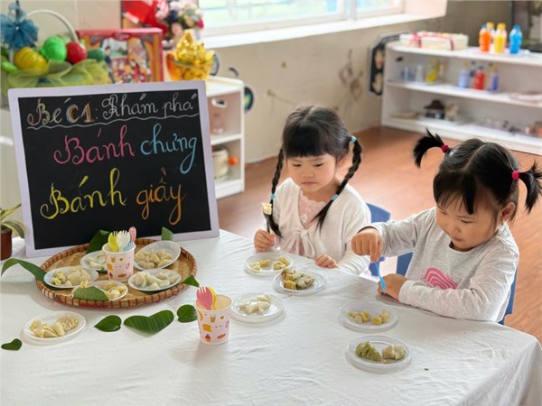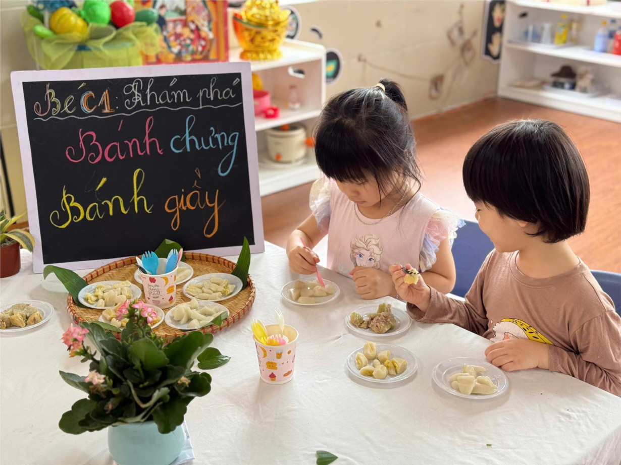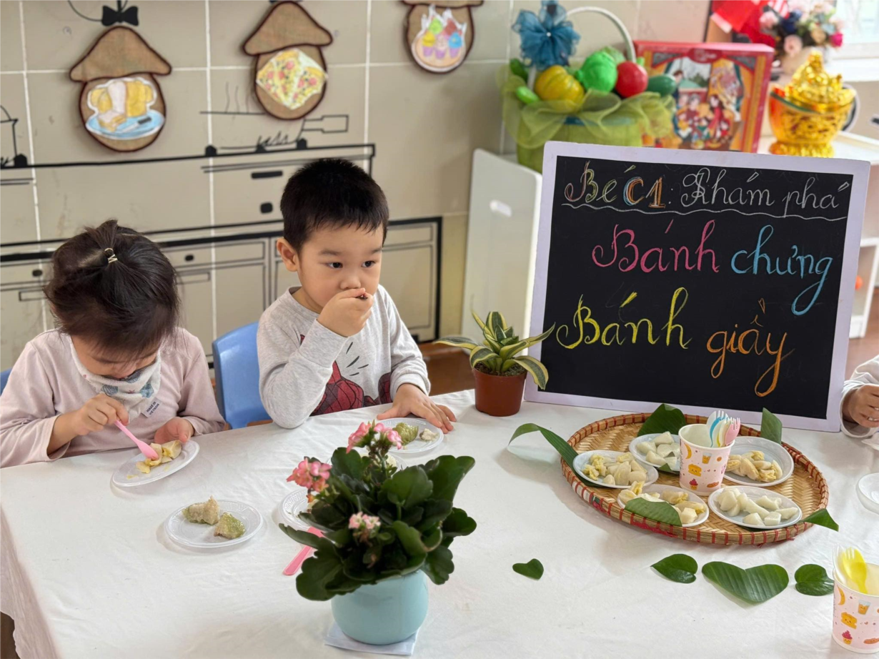 KHÁM PHÁ BÁNH CHƯNG BÁNH GIÀY – MỘT TRẢI NGHIỆM Ý NGHĨA CỦA CÁC BÉ LỚP MẪU GIÁO BÉ C1