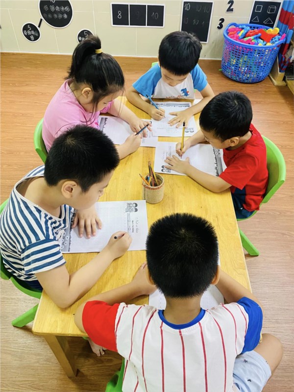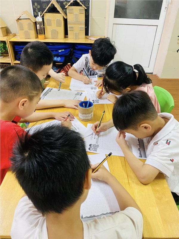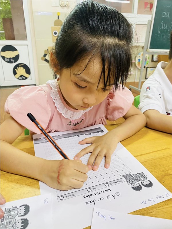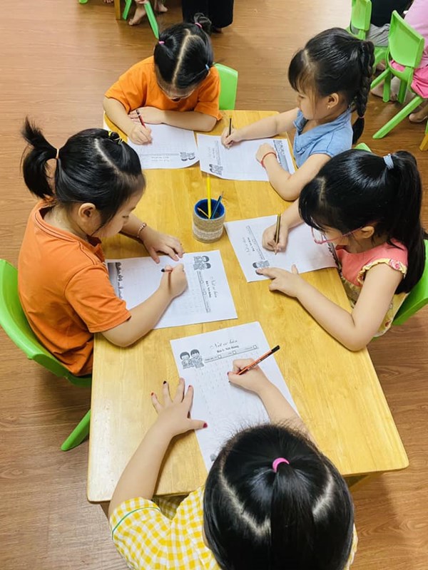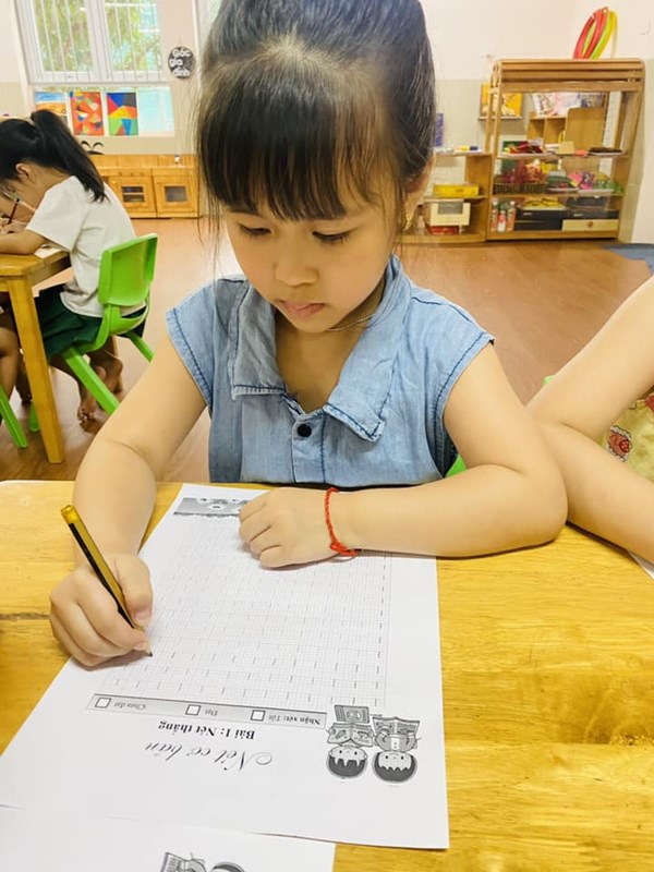 Tập ảnh : Giờ học Tập tô nét thẳng của các bạn khối MGL
