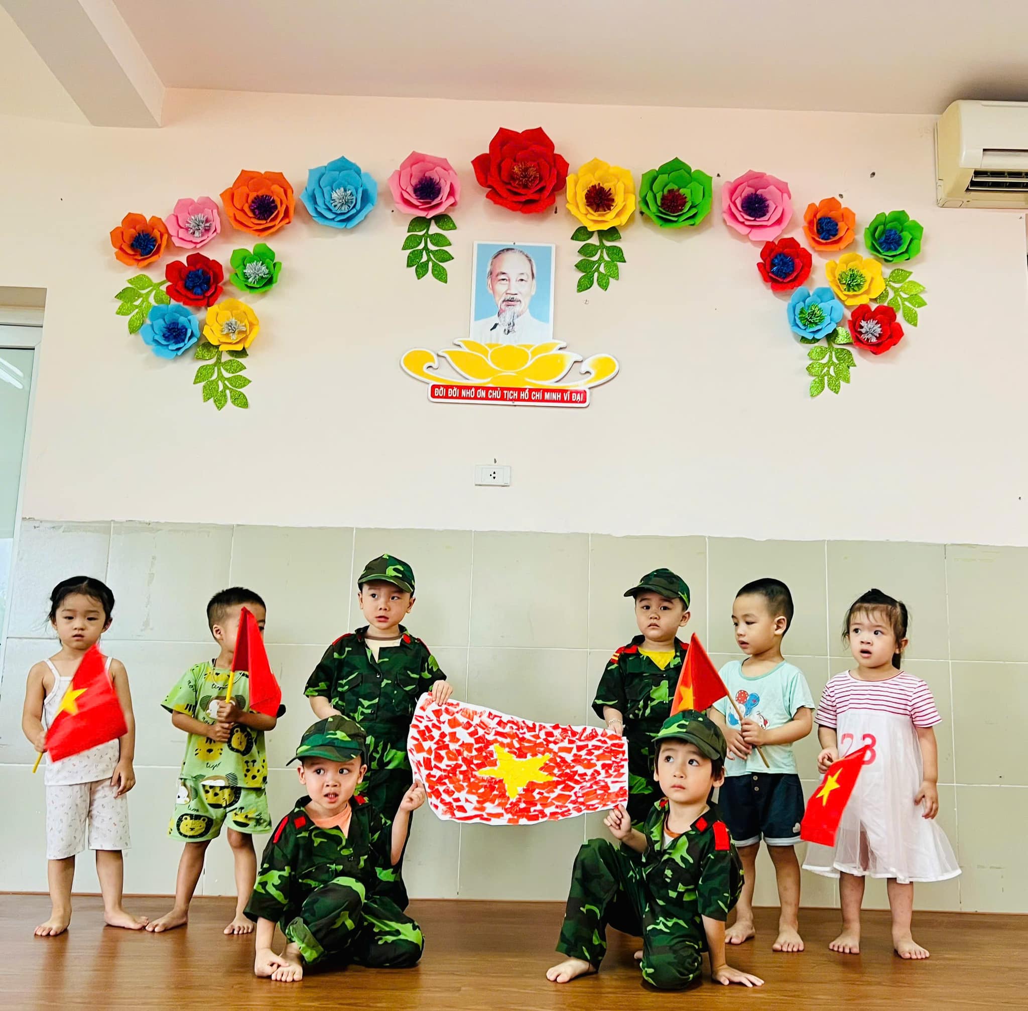 💐💐💐Chào mừng 79 năm Cách mạng Tháng Tám và Quốc khánh 2-9, cô và trò trường mầm non Hoa Trạng Nguyên đã cùng nhau làm lá cờ tổ Quốc