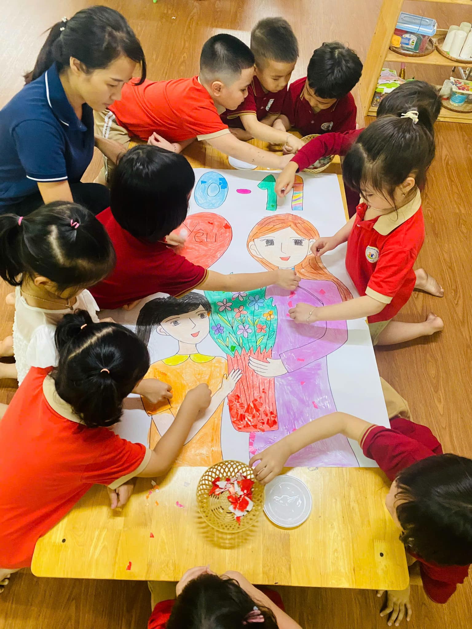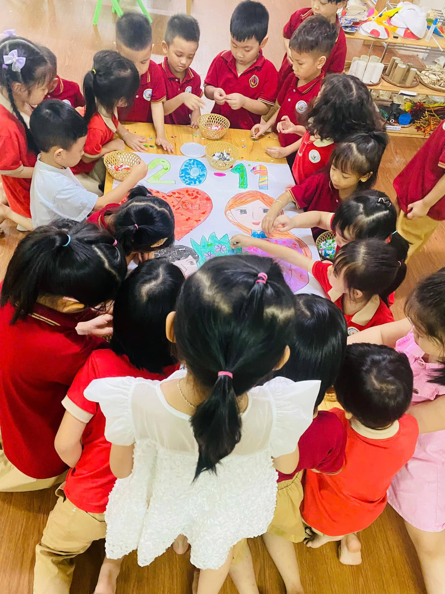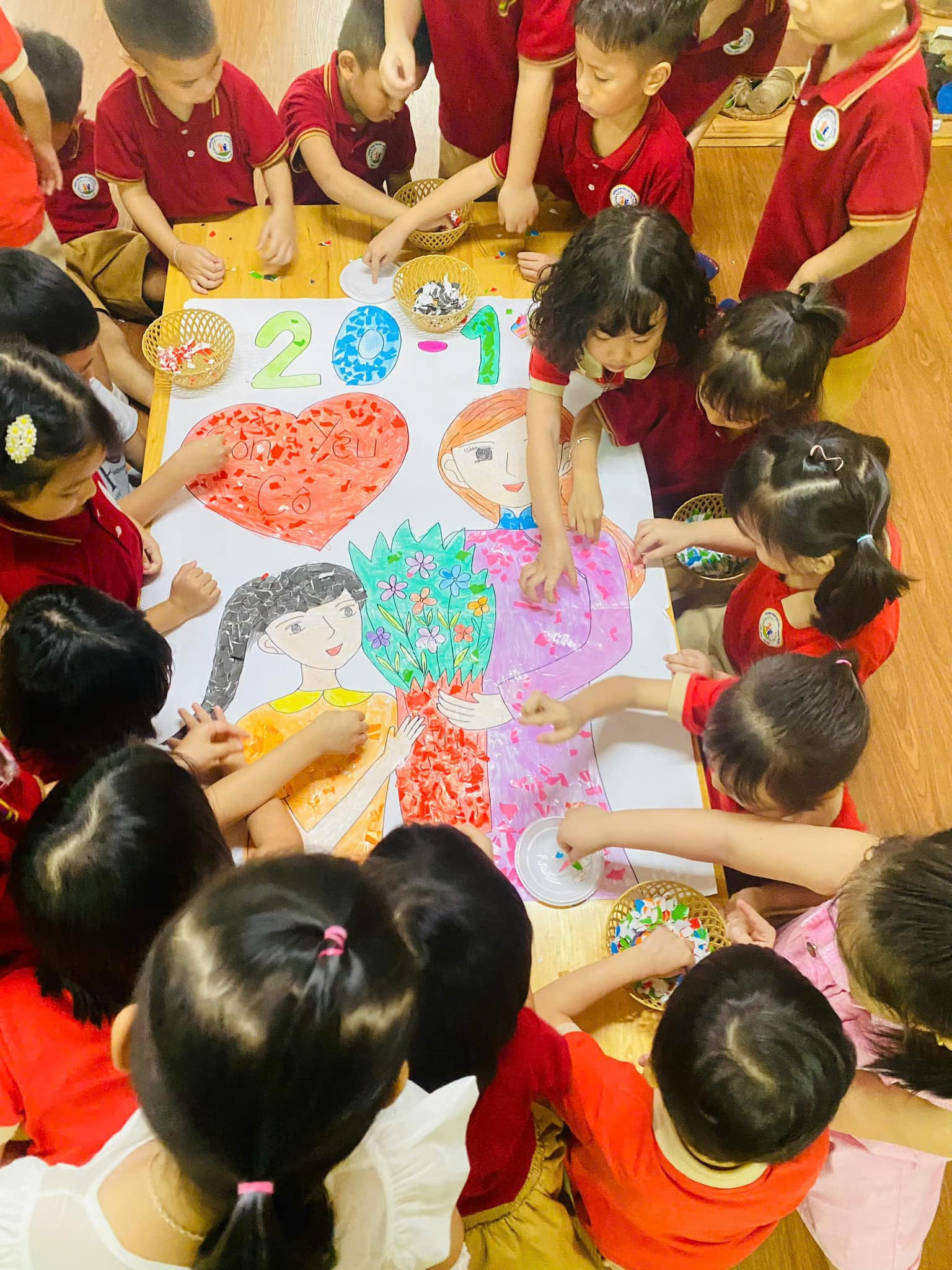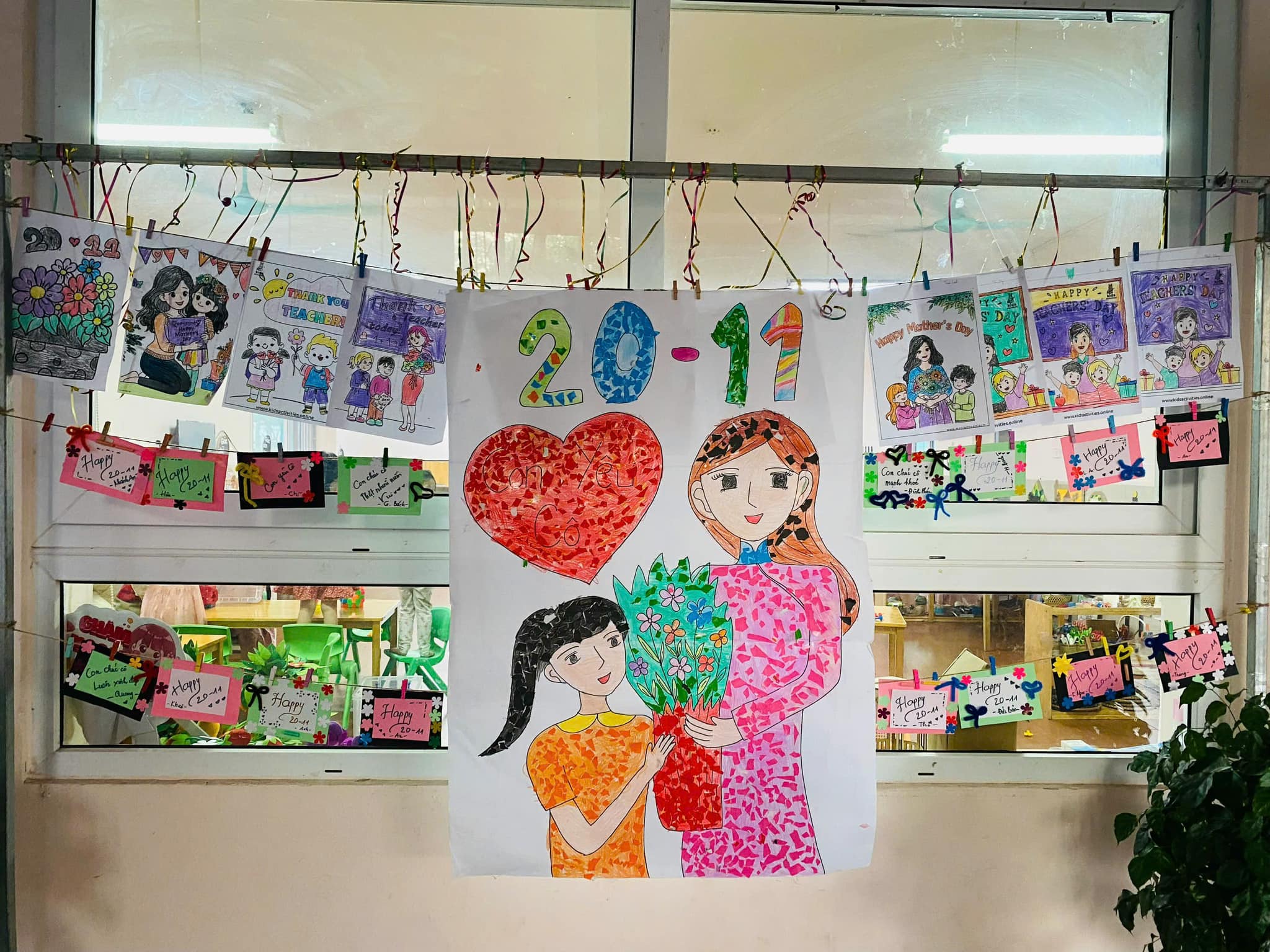 chiếc thiệp, bức tranh. Mỗi nét bút, mẩu giấy màu xé dán là một lời chúc mừng, một tình cảm tri ân sâu sắc dành tặng thầy cô – những người luôn tận tâm, yêu thương và dẫn dắt các con trên hành trình khôn lớn.