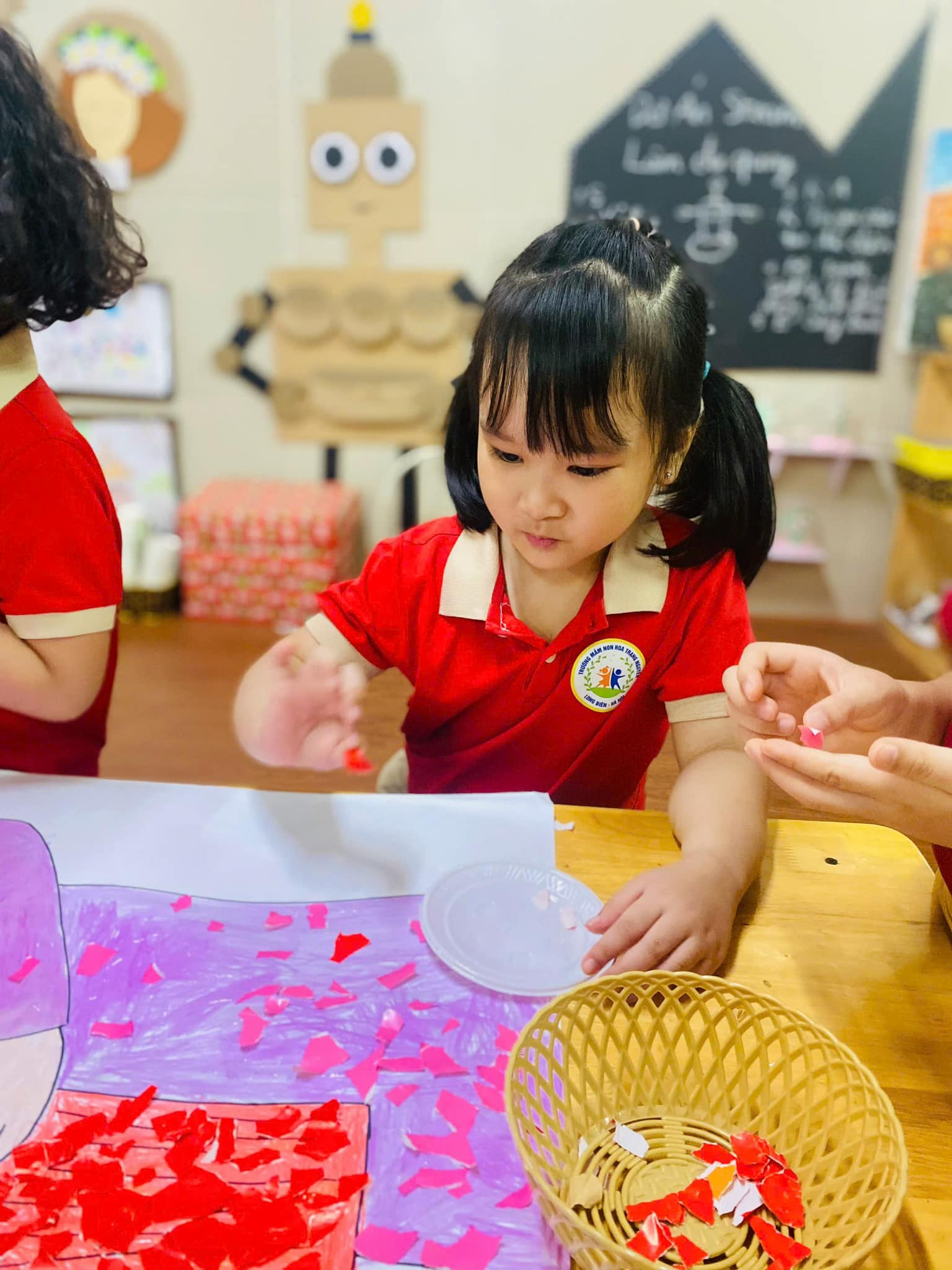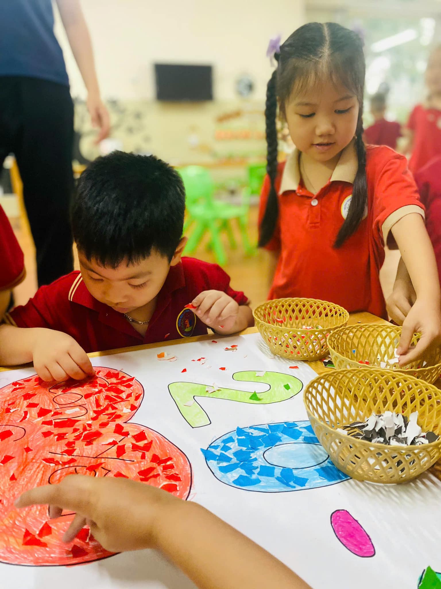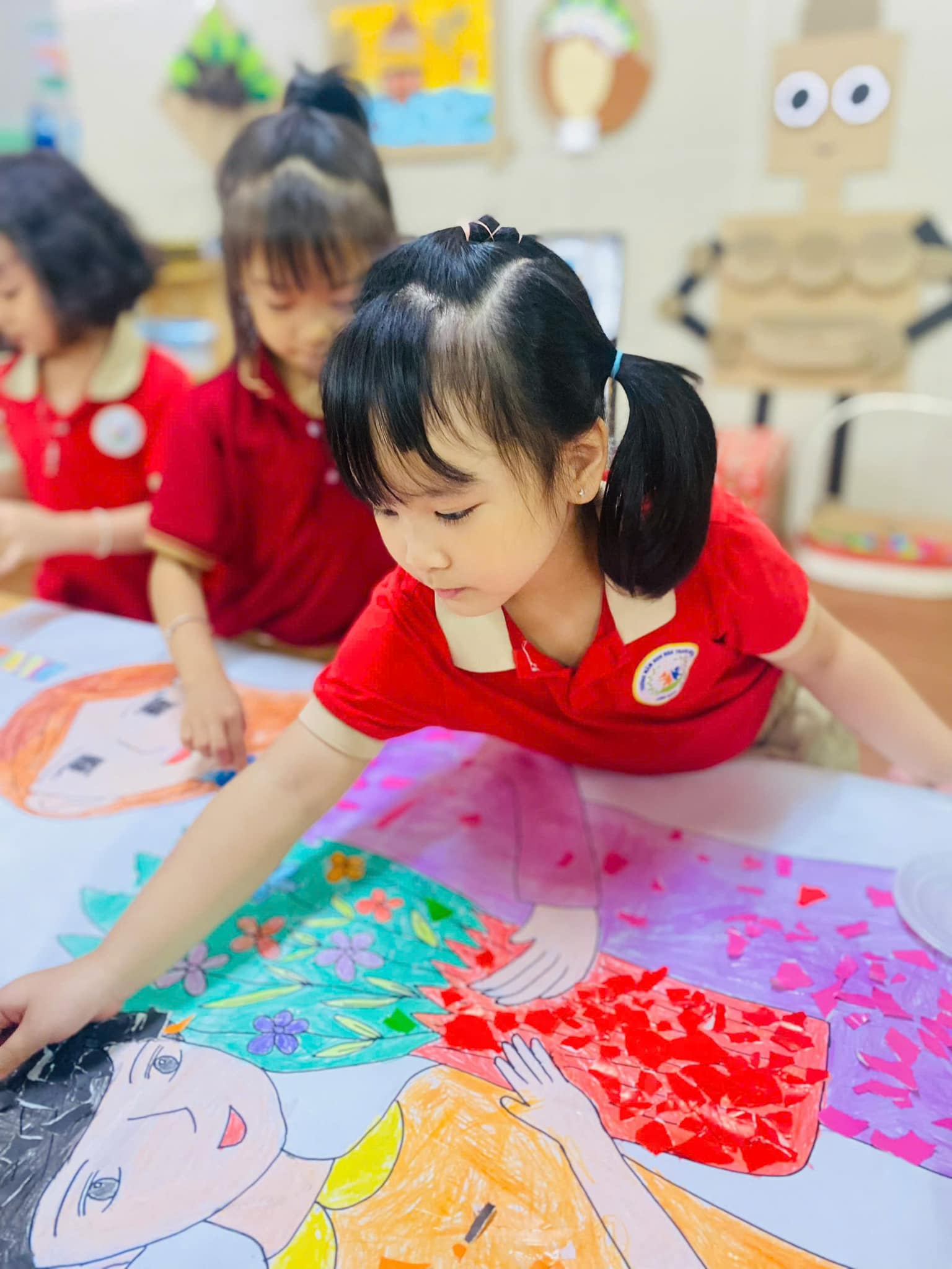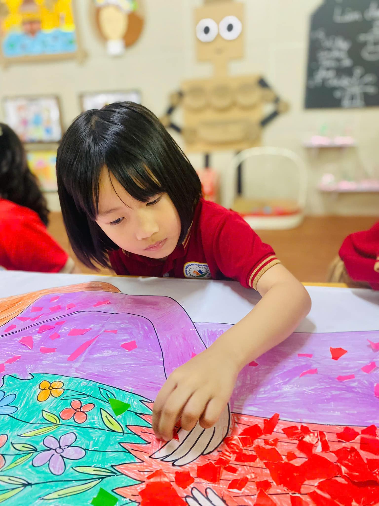 chiếc thiệp, bức tranh. Mỗi nét bút, mẩu giấy màu xé dán là một lời chúc mừng, một tình cảm tri ân sâu sắc dành tặng thầy cô – những người luôn tận tâm, yêu thương và dẫn dắt các con trên hành trình khôn lớn.
