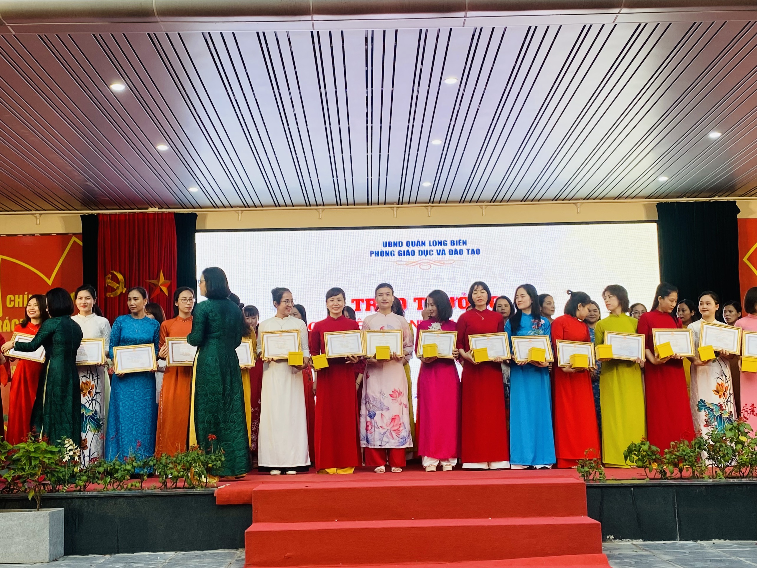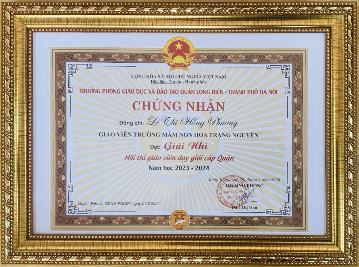 Với những cố gắng,nhiệt huyết và nỗ lực không ngừng mệt mỏi, tại hội nghị, 04 đồng chí GVNV Trường Mầm non Hoa Trạng Nguyên vinh dự được nhận giấy khen của Phòng GD&ĐT Quận Long Biên: