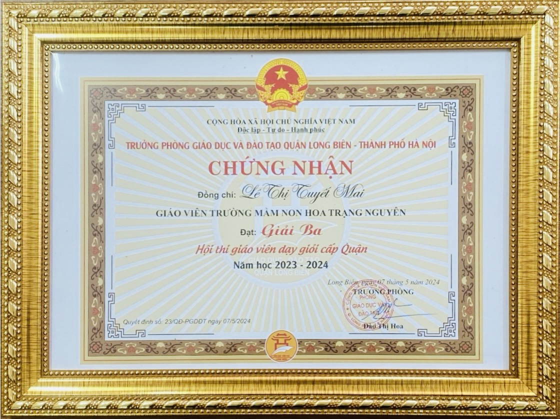 2. Cô giáo Lê Thị Tuyết Mai giành giải Ba giáo viên dạy giỏi cấp Quận
