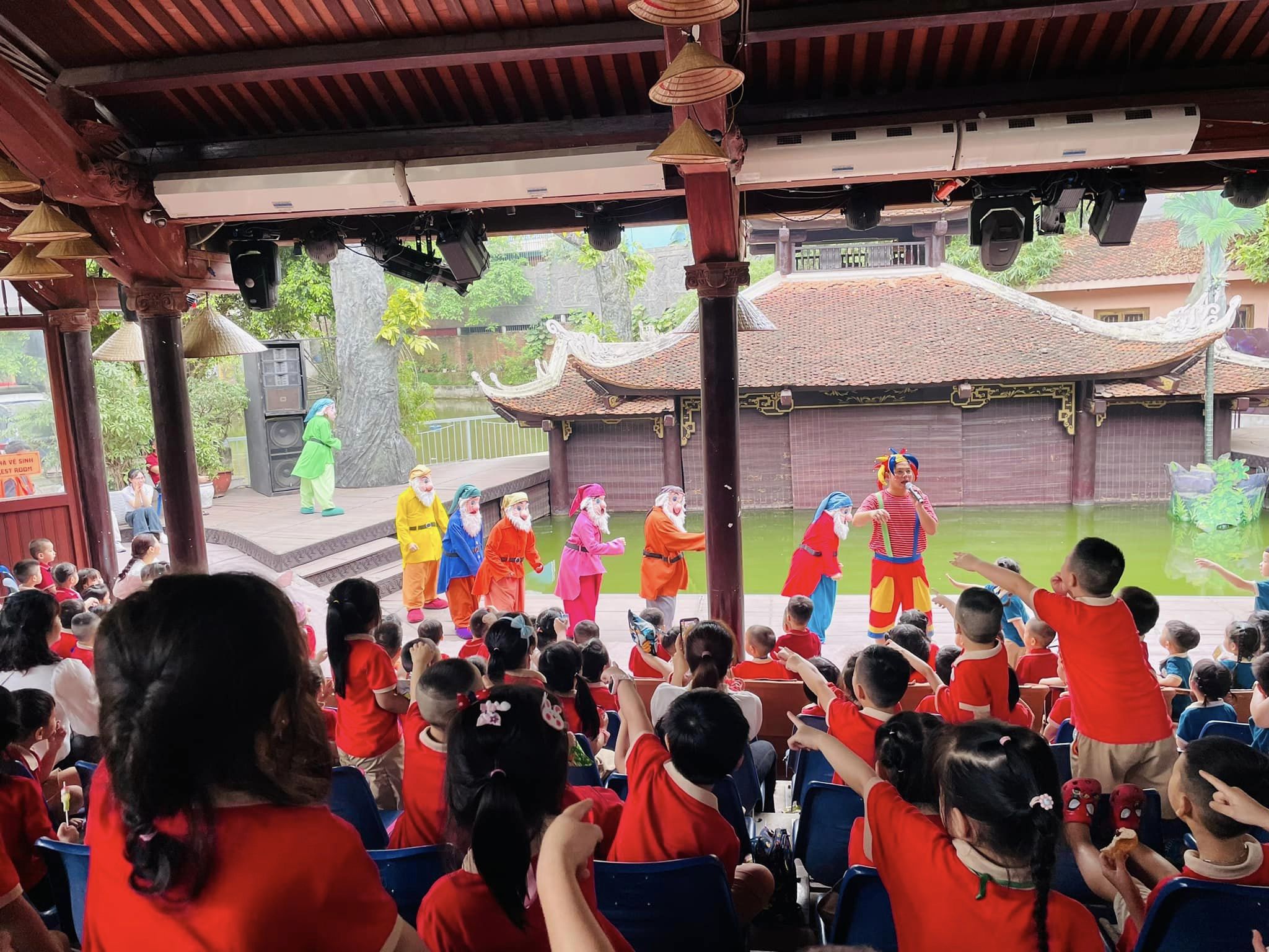 Sau khi rời Lăng Bác, cả đoàn tiếp tục cuộc hành trình đến xem tiết mục múa rối với vở diễn vô cùng tuyệt vời “Thế giới thần tiên – Nàng Bạch Tuyết và bảy chú lùn”. Tại đây các bé còn được trải nghiệm và gặp gỡ các nhân vật rối nước bước ra từ câu chuyện dân gian Việt Nam. Dưới góc nhìn của ngôn ngữ nghệ thuật múa rối, câu chuyện được kể lại với những tình tiết ly kỳ, mang tính cách điệu, biến hóa hấp dẫn. Tất cả các con vô cùng hào hứng và thích thú.