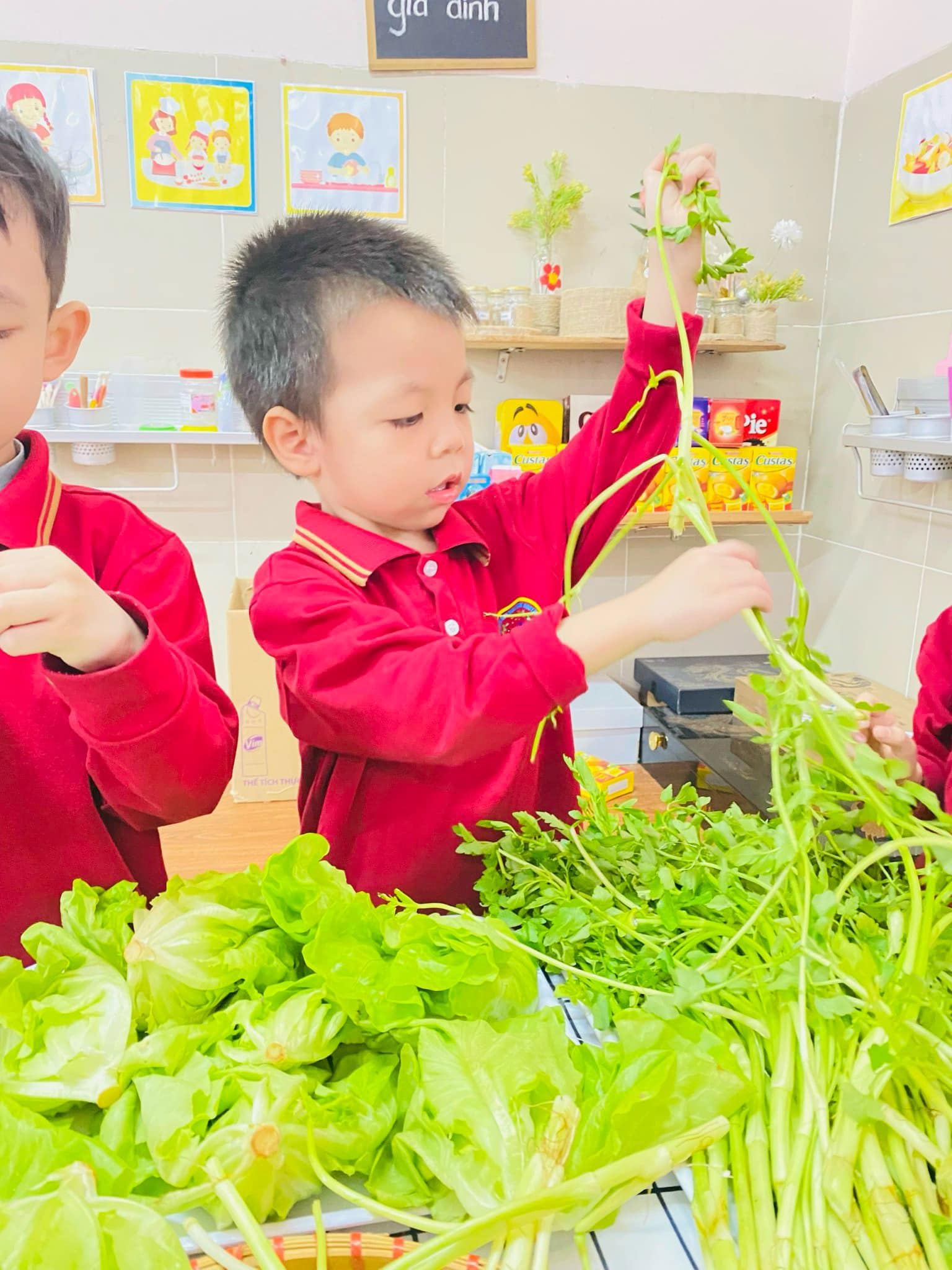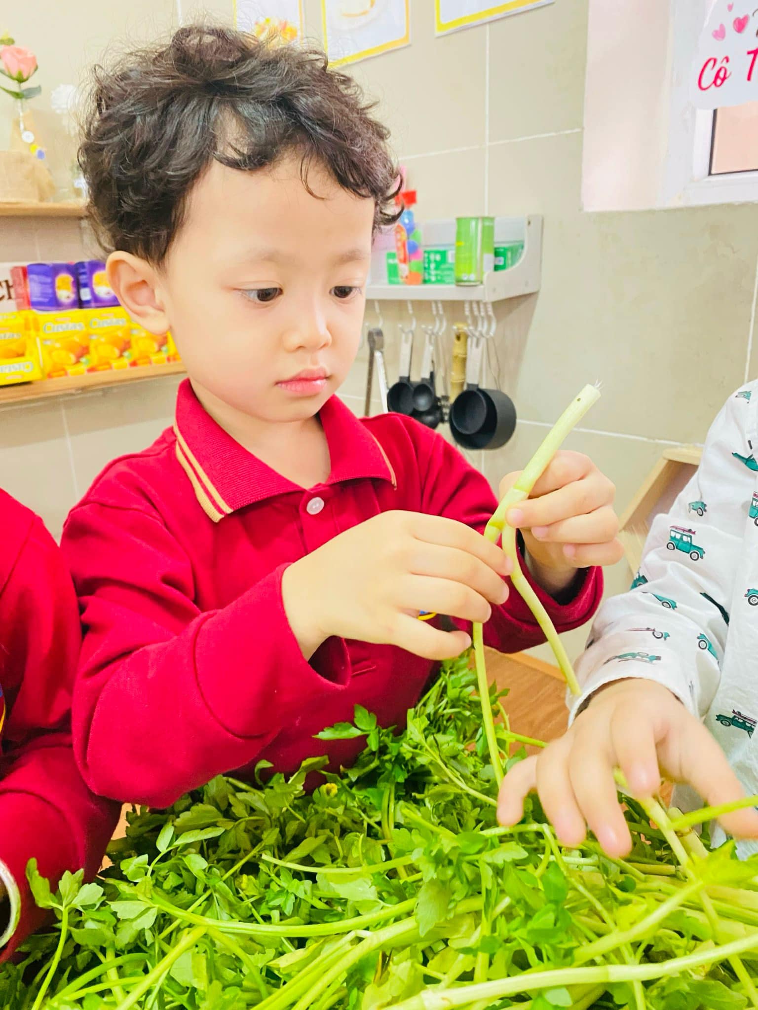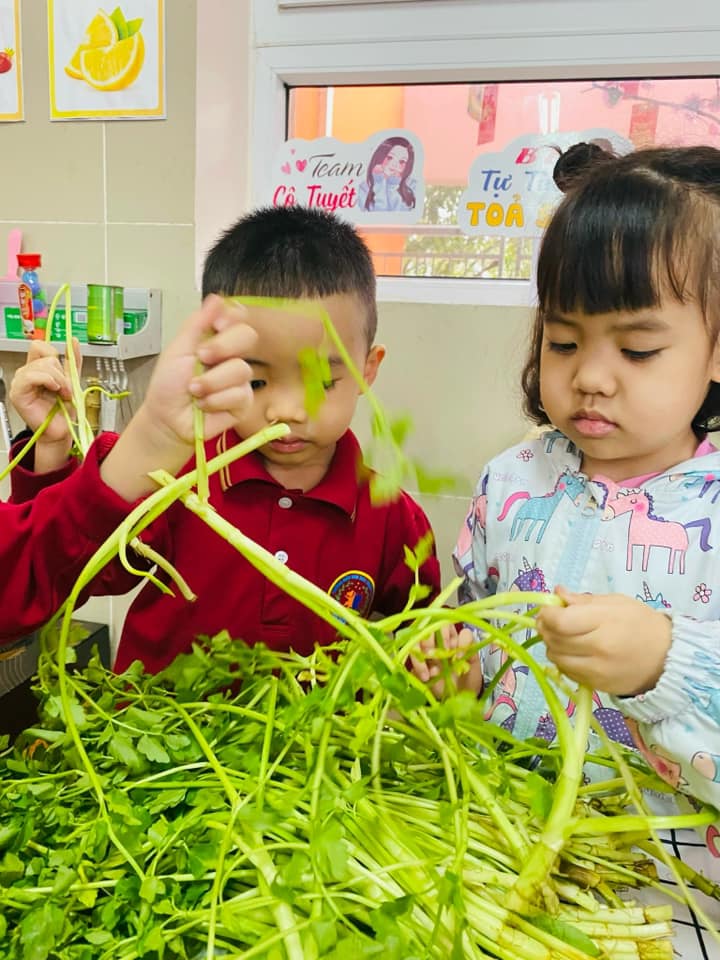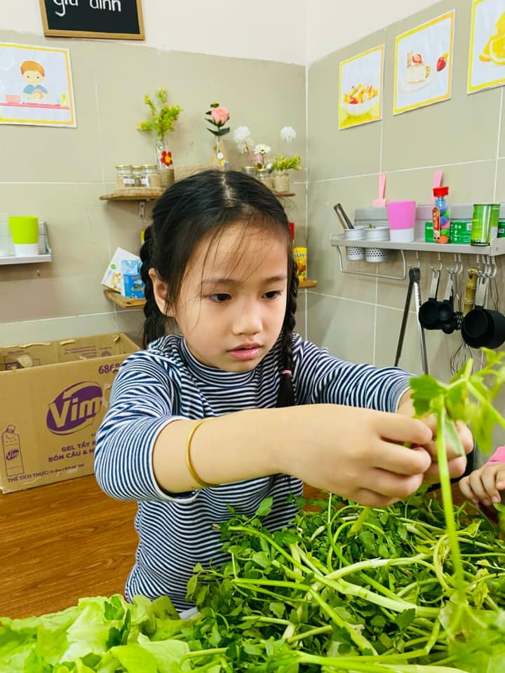 Nhặt rau là công việc quen thuộc hàng ngày bé được xem thấy nhưng có lẽ rất ít khi được trải nghiệm thực tế!