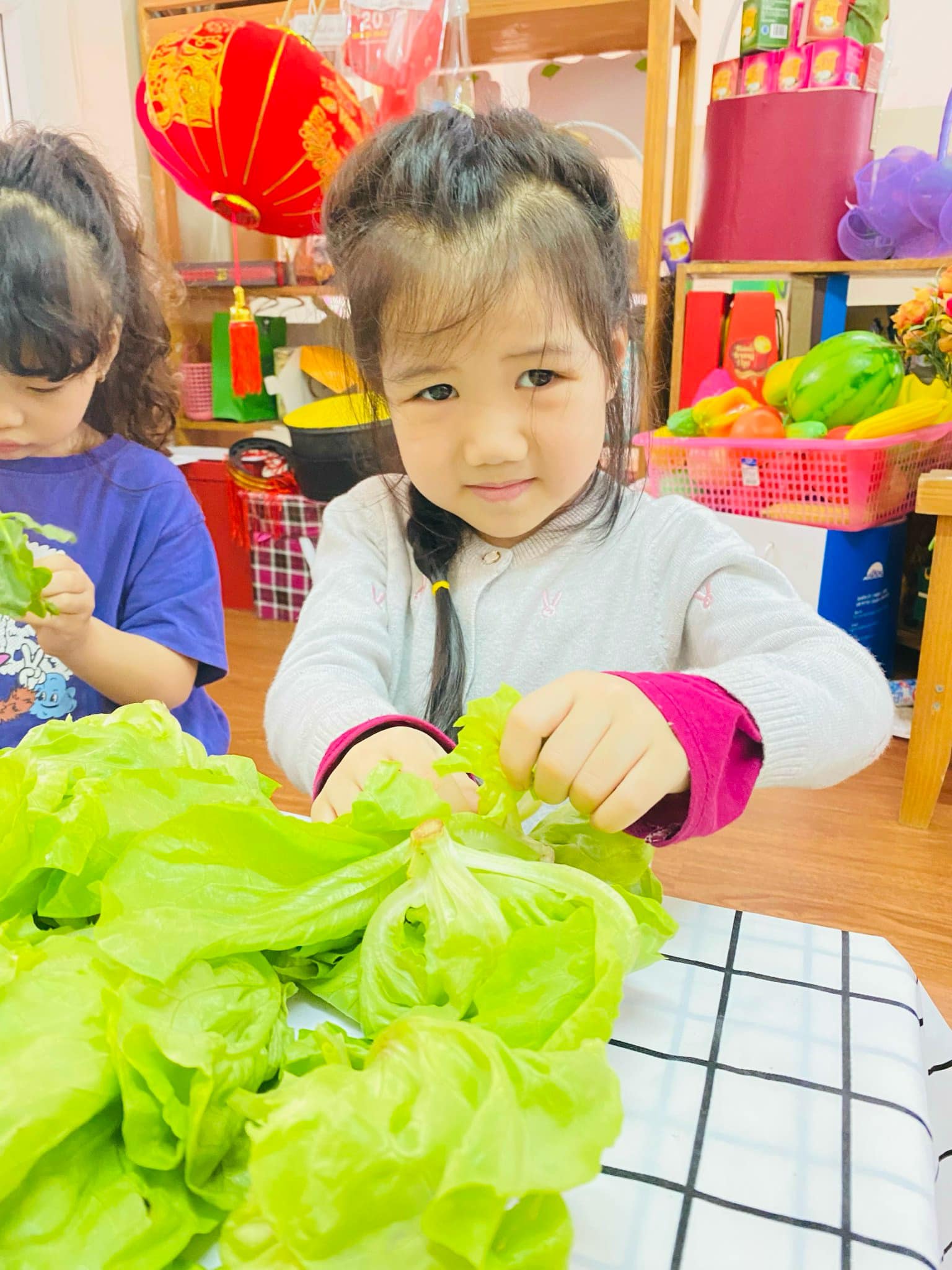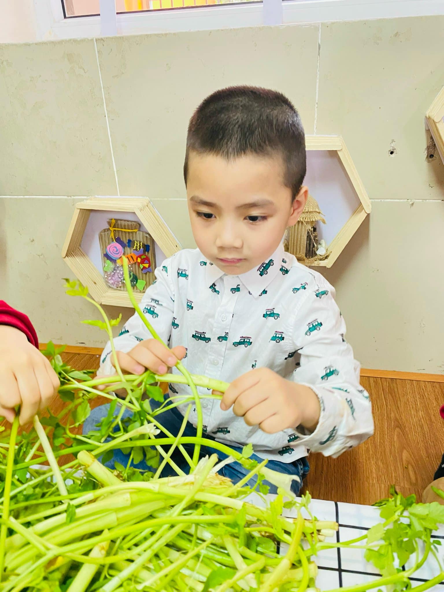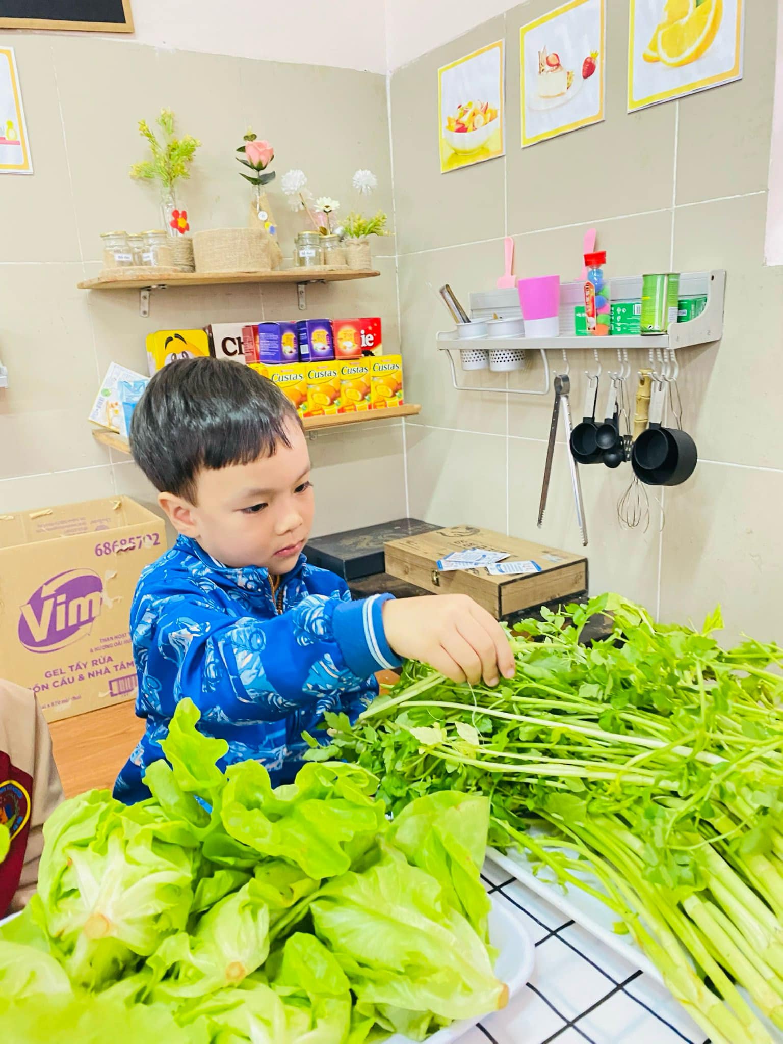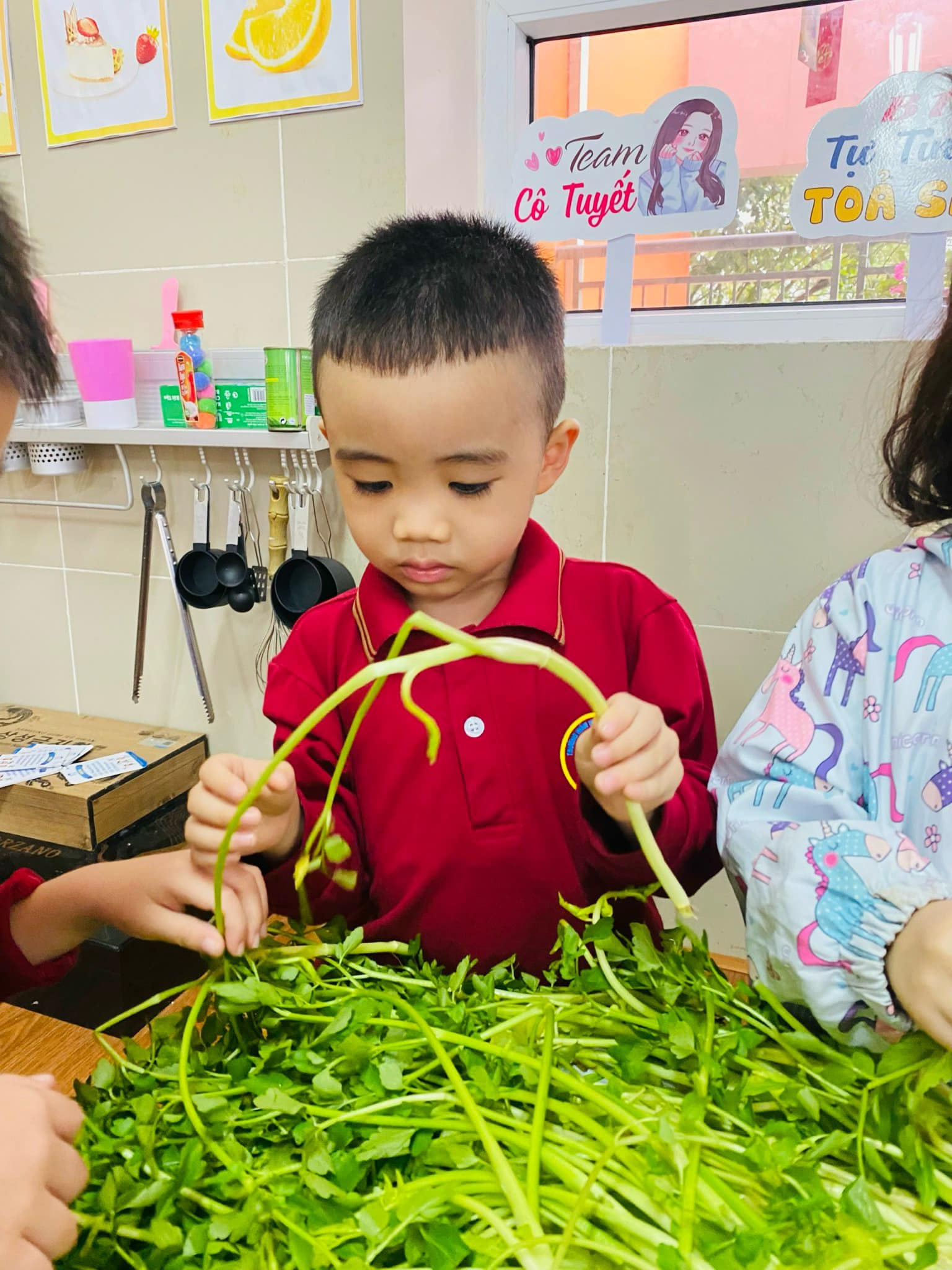 Nhặt rau là công việc quen thuộc hàng ngày bé được xem thấy nhưng có lẽ rất ít khi được trải nghiệm thực tế!