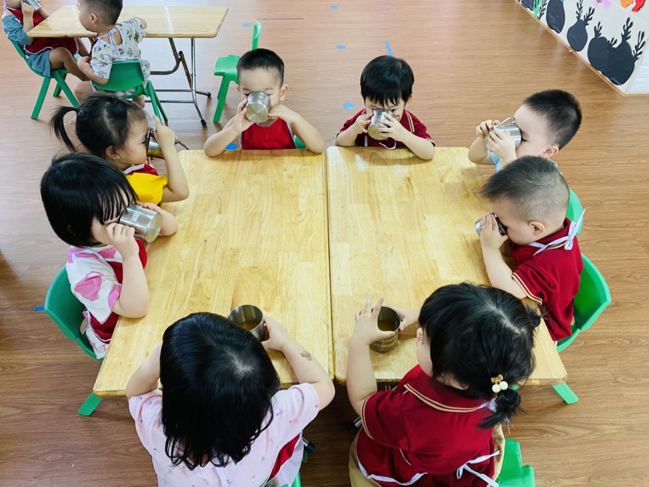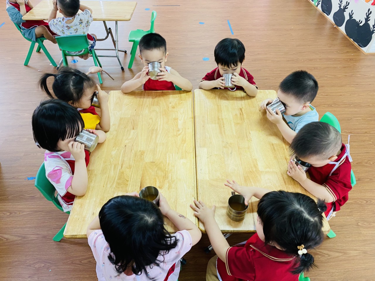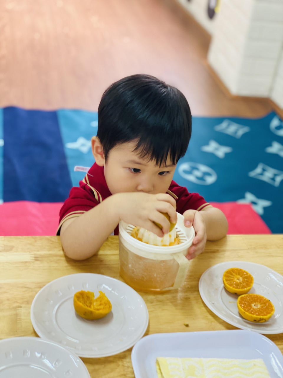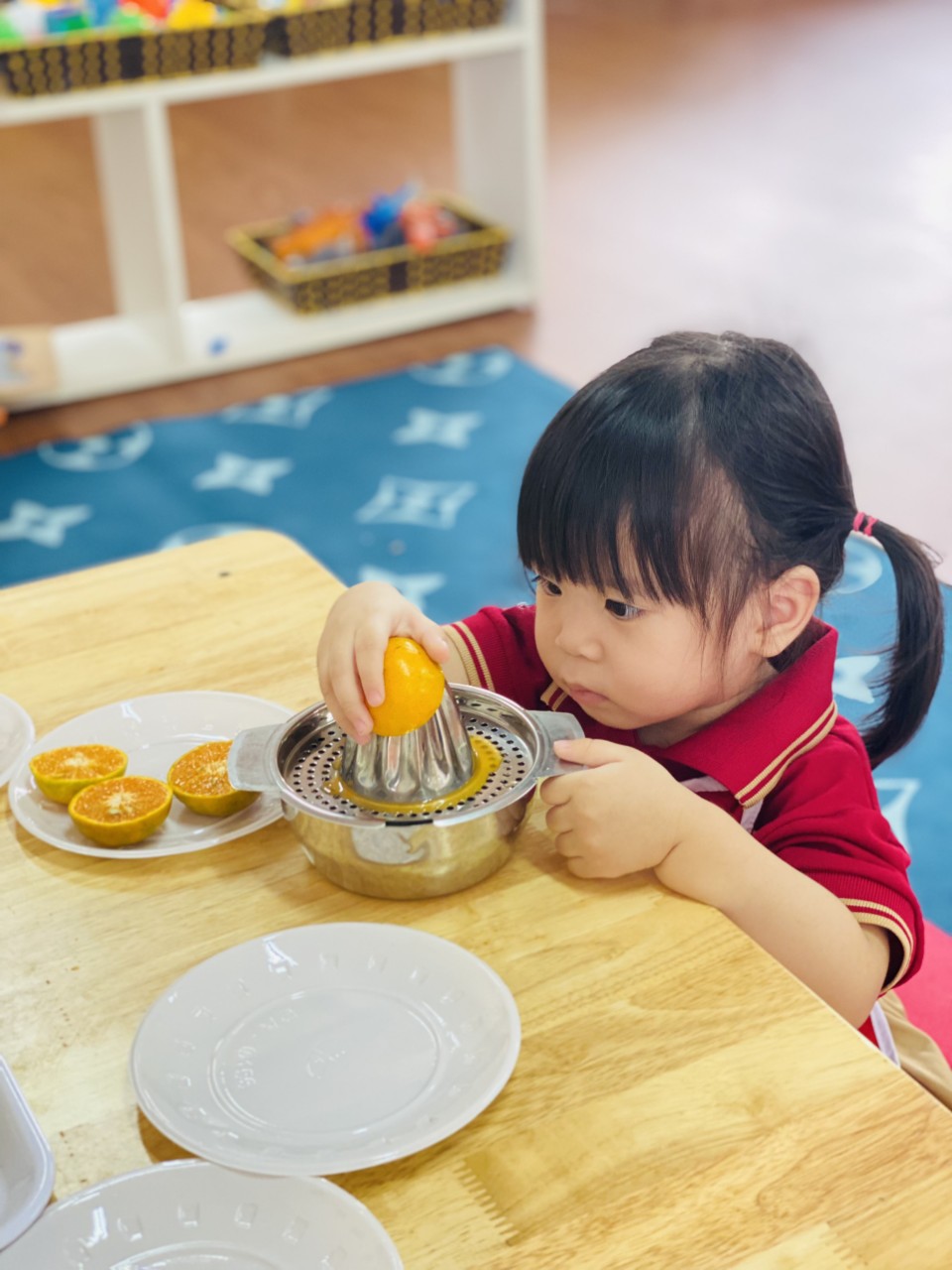 ✨Các bé được cô giáo hướng dẫn cụ thể từng kỹ năng cầm, xoay để vắt cam sao cho ra hết nước trong miếng cam và cùng thưởng thức cốc nước cam thơm ngon bổ dưỡng.
