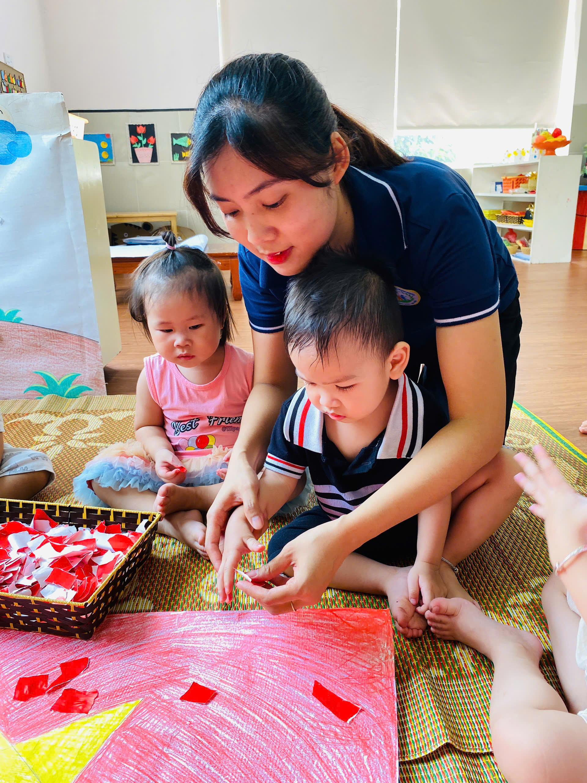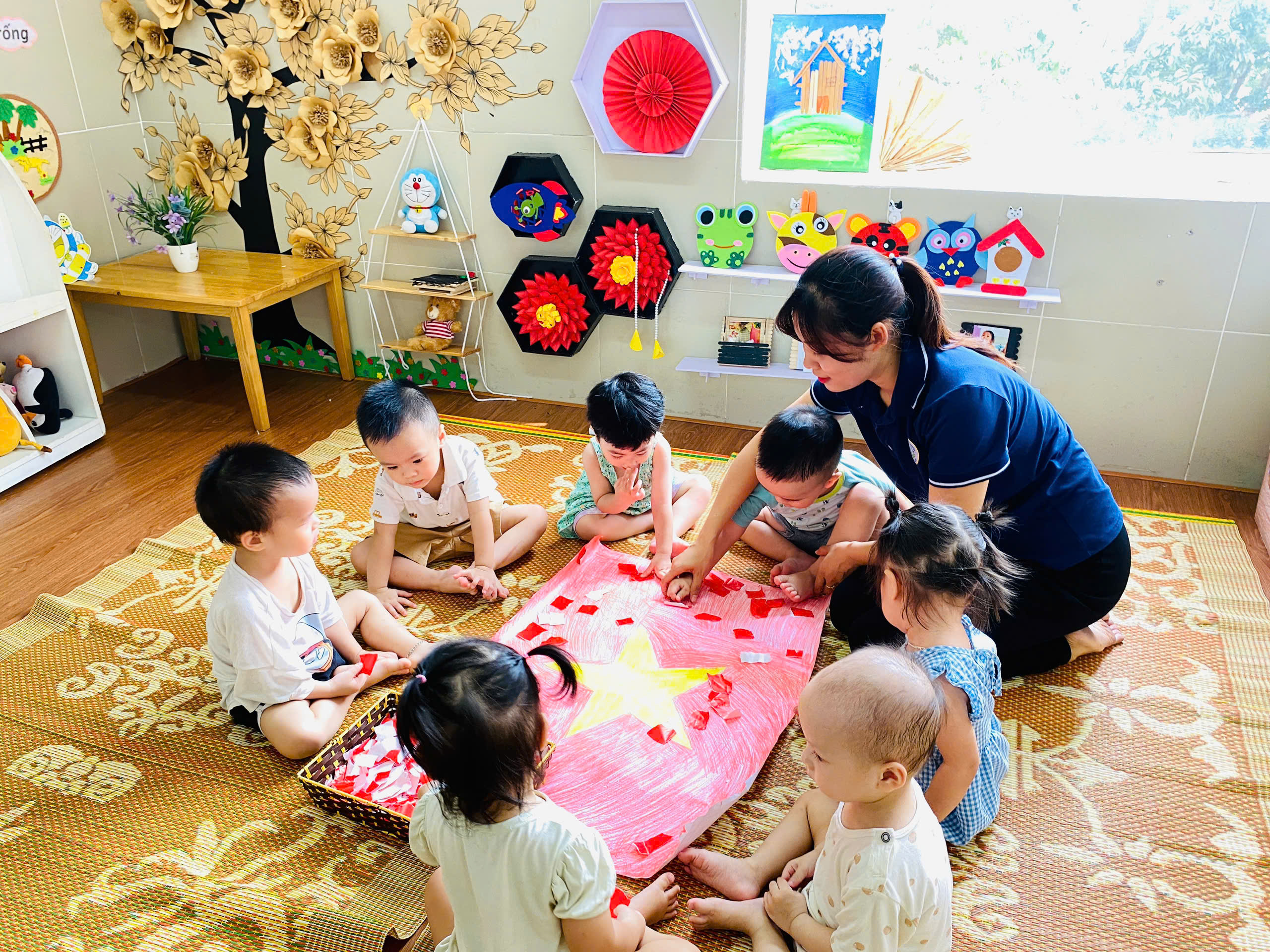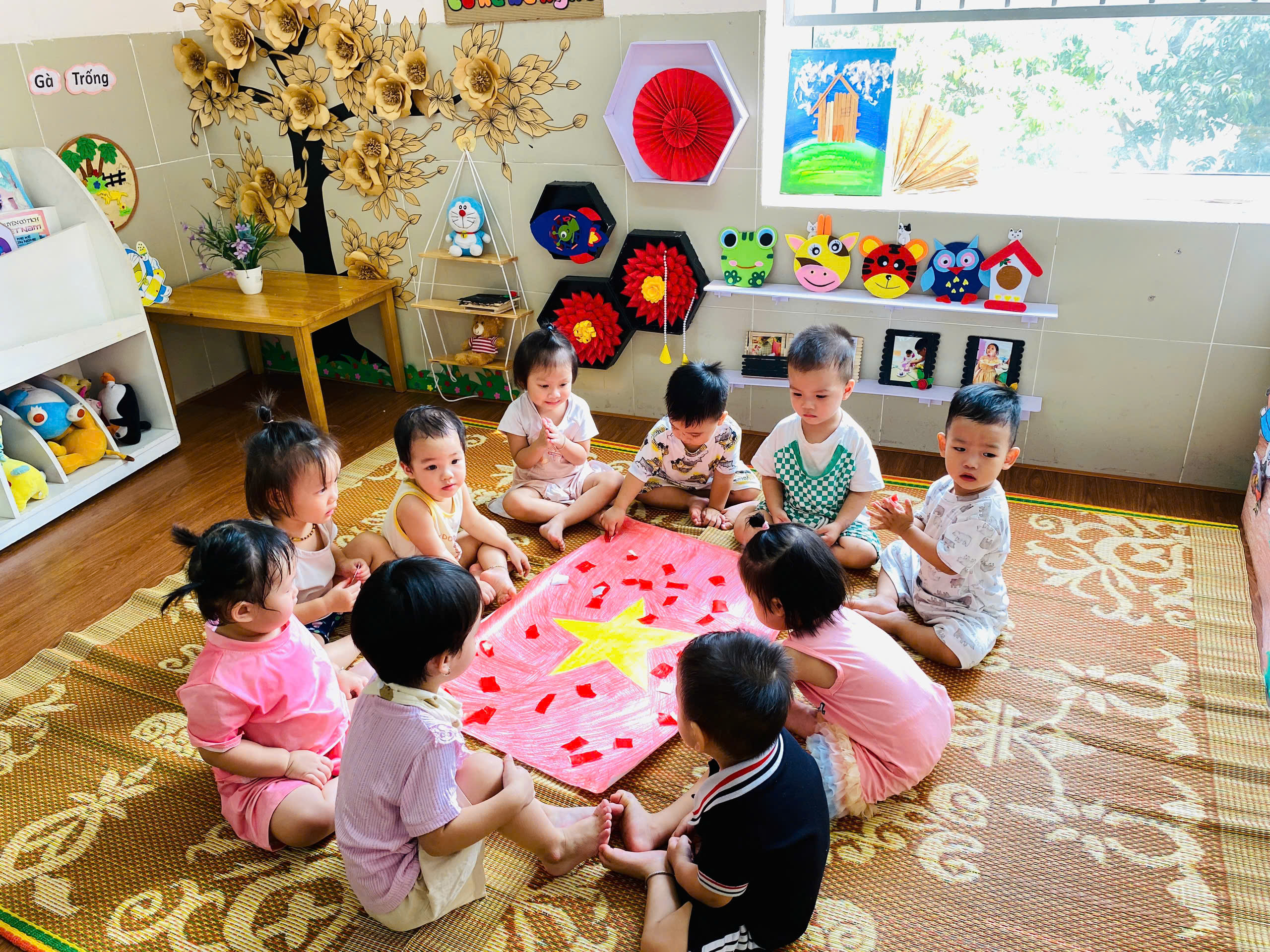 🇻🇳Nhân dịp chào mừng ngày Quốc Khánh 2/9, các bạn nhỏ lớp D2 đã có một tiết tạo hình thật ý nghĩa! Dưới sự hướng dẫn của cô giáo, các bé đã cùng nhau trang trí dán lá cờ Tổ quốc xinh xắn và đáng yêu. Qua hoạt động này, các bé không chỉ được rèn luyện sự khéo léo và tư duy sáng tạo, mà còn được dạy về ý nghĩa của ngày Quốc Khánh và tình yêu đối với đất nước.