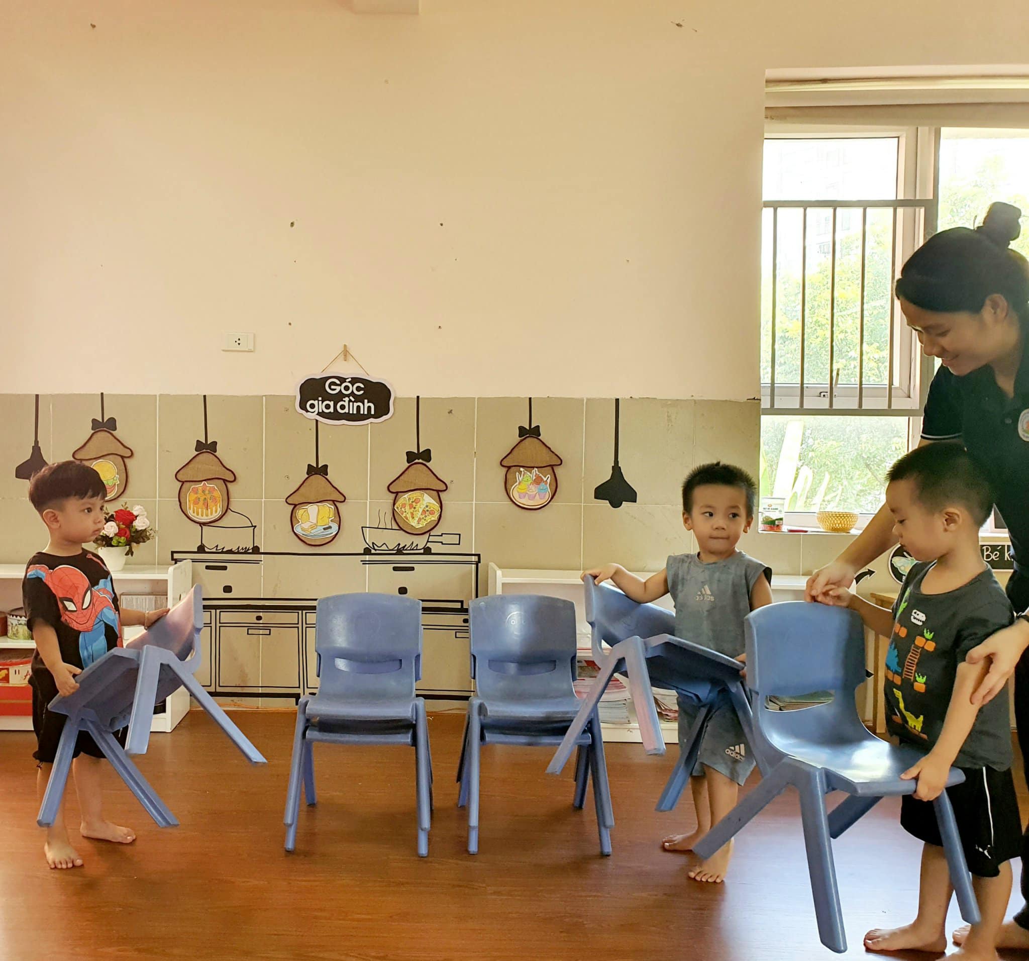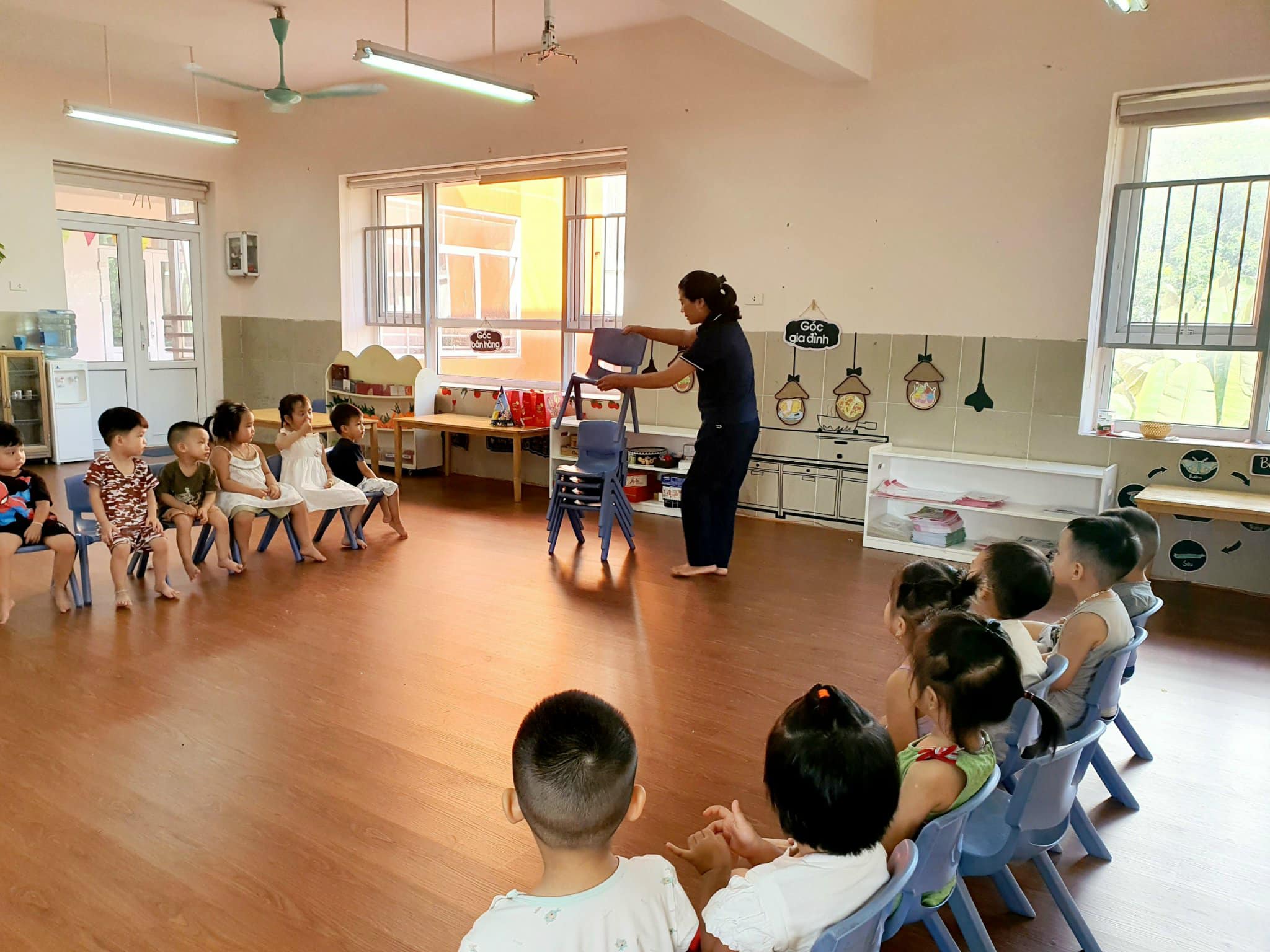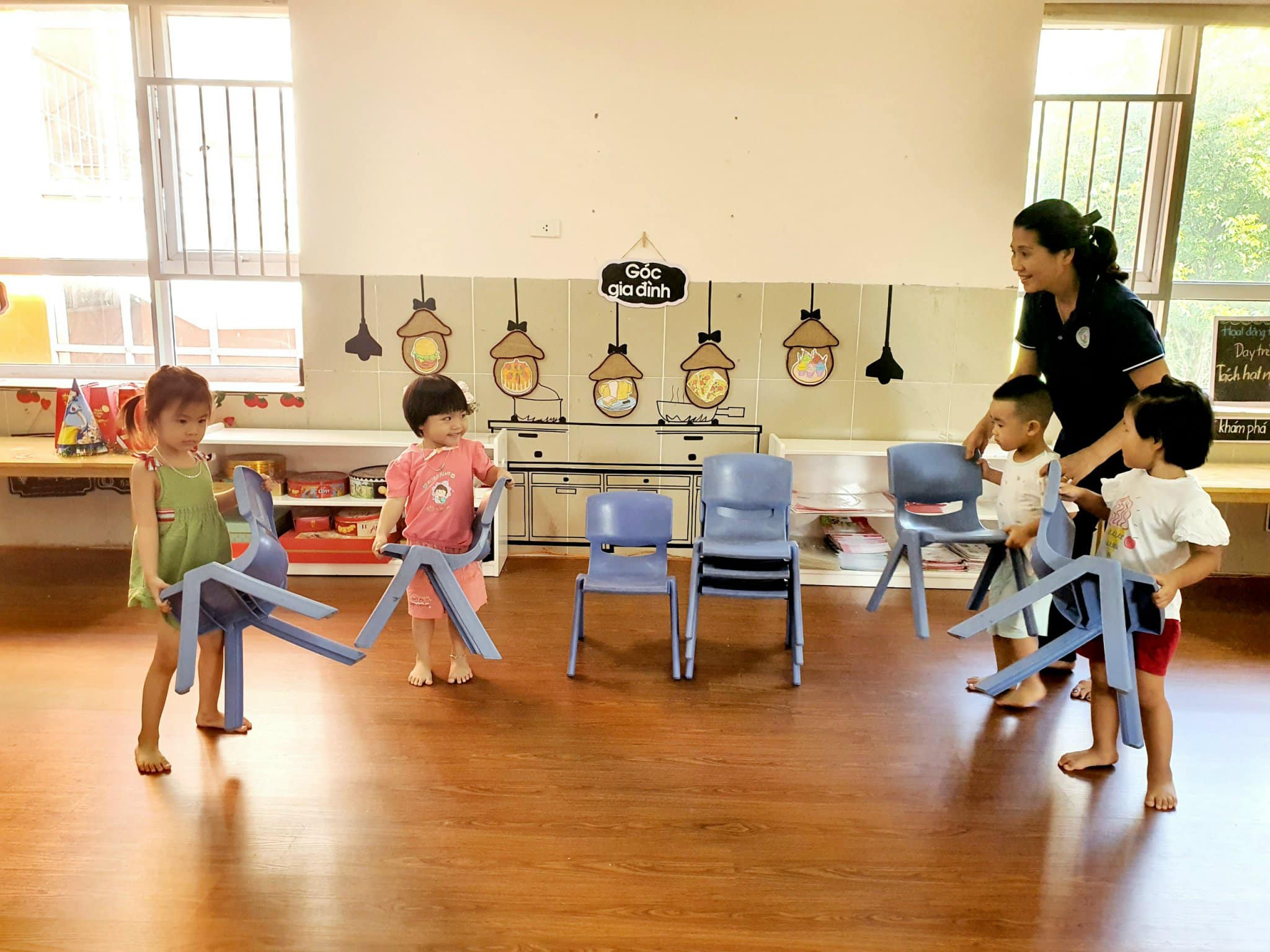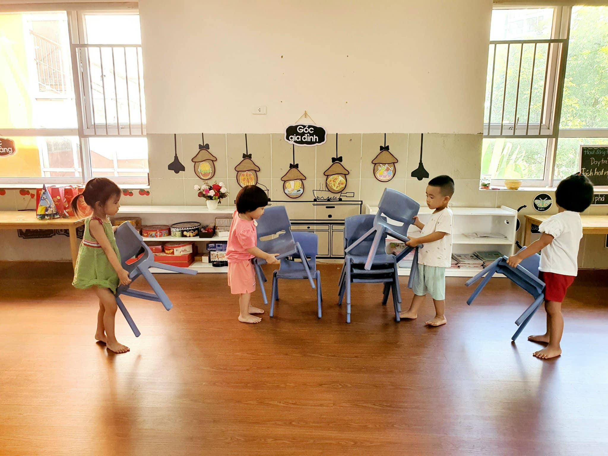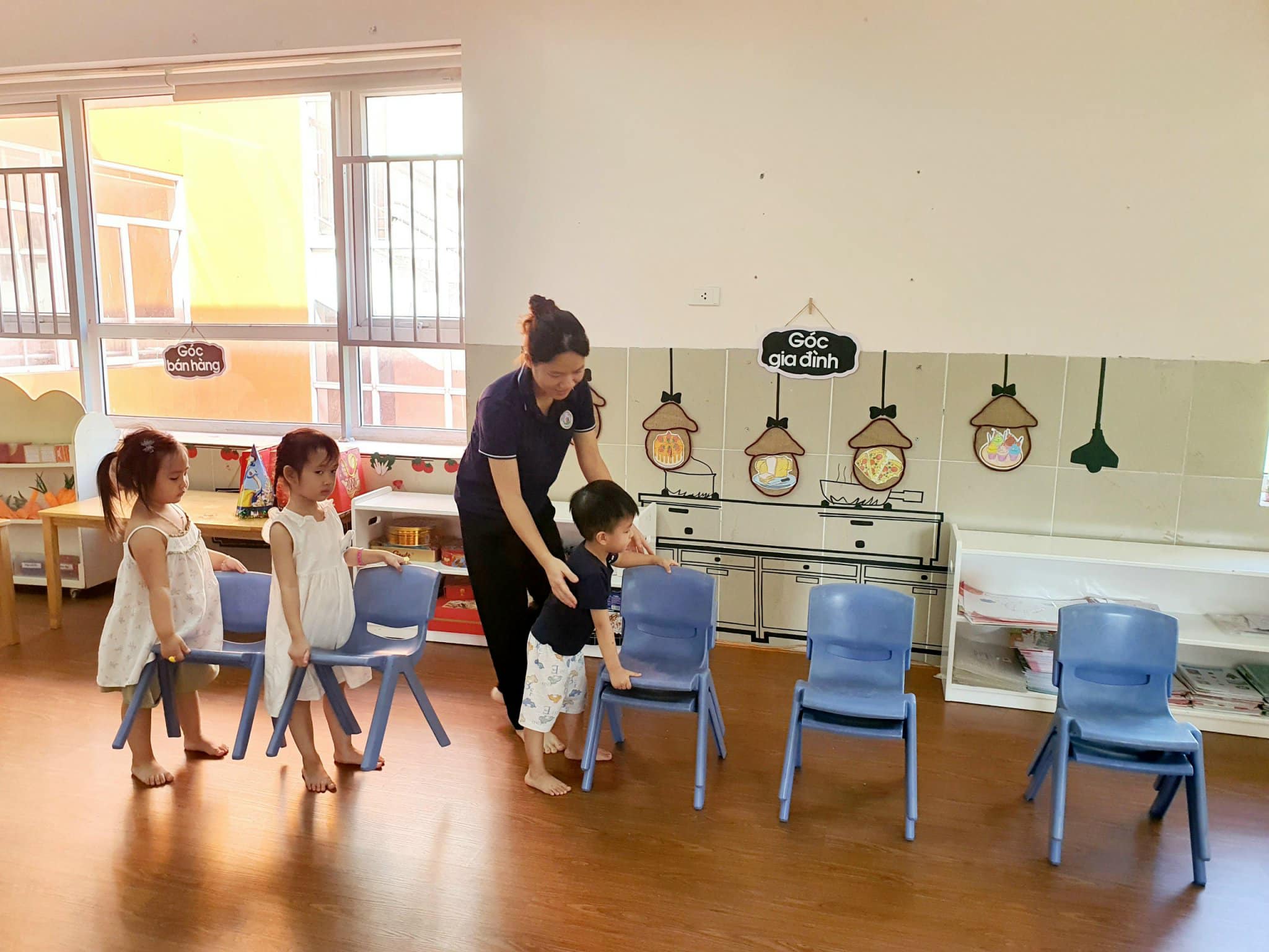 Các bạn lớp MGB C1 đã biết bê ghế, cất ghế và ngồi ghế làm sao cho đúng cách rồi đấy. Bê ghế, lấy và cất ghế nhẹ nhàng không gây ra tiếng động mạnh, lấy cất ghế đúng nơi quy định được