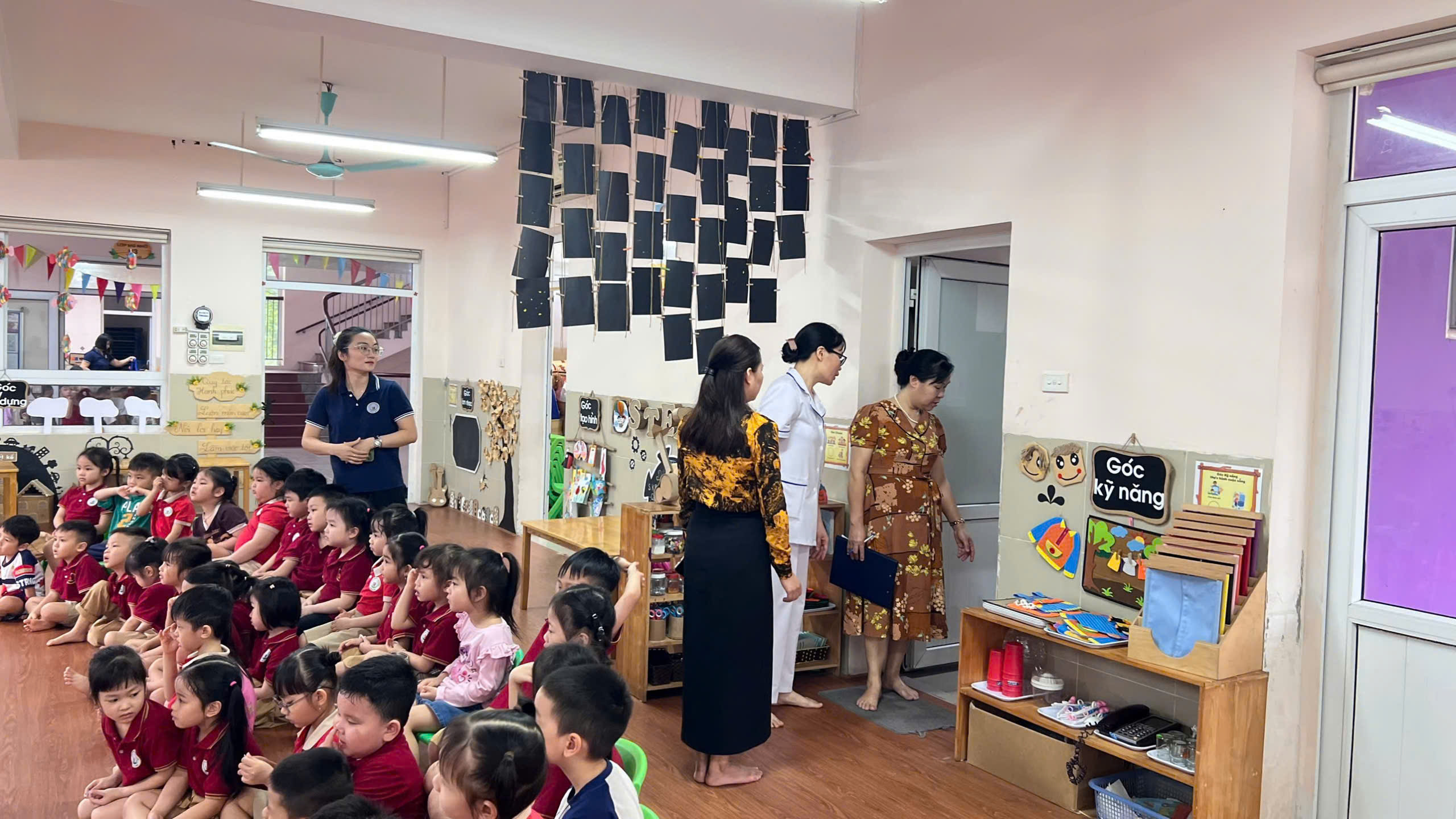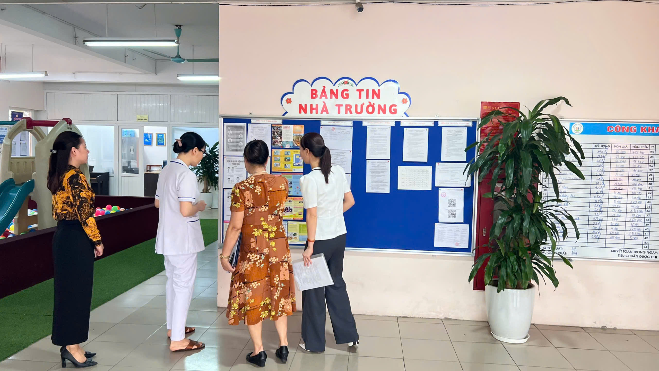 Thực hiện Công văn số 166/UBND-YT ngày 06/02/2025 của UBND quận Long Biên về việc kiểm tra, đánh giá công tác công tác Y tế trường học năm học 2024-2025. Sáng ngày 18/4/2025, trường Mầm non Hoa Trạng Nguyên đón đoàn kiểm tra công tác Y tế trường học. Đoàn kiểm gồm các đồng chí Nguyễn Thị Chinh - Phó trưởng khoa y tế công cộng, đ/c Đào Đình Quyết, đ/c Nguyễn Thị Mai Quyên - Chuyên viên phòng y quận và đ/c Nguyễn Thị Thanh Ngân - Trạm trưởng trạm y tế phường Phúc Đồng. Đoàn kiểm tra đã tiến hành đánh giá tập trung vào các hoạt động: Công tác phòng chống dịch bệnh, phòng chống tai nạn thương tích, vệ sinh an toàn thực phẩm, vệ sinh môi trường, vệ sinh trường lớp, hồ sơ y tế, truyền thông y tế. Đoàn cũng kiểm tra tại bếp ăn, test nhanh bát, thìa cũng như kiểm tra việc lưu mẫu thức ăn. Các thành viên trong Đoàn đánh giá rất cao công tác chỉ đạo của Ban giám hiệu nhà trường. Nhà trường đã làm tốt công tác y tế học đường, phòng y tế có đủ trang thiết bị và phác đồ sơ cấp cứu ban đầu, thực hiện tốt công tác y tế; hồ sơ y tế học đường đầy đủ theo quy định. Các lớp học đảm bảo an toàn, đủ ánh sáng, môi trường sư phạm xanh, sạch, đẹp. Tăng cường tốt các biện pháp tuyên truyền phòng chống dịch bệnh, phòng chống tai nạn thương tích cho trẻ. Nhà trường triển khai tốt công tác bán trú, vệ sinh ATTP, lưu giữ đầy đủ hồ sơ giám sát, truy xuất nguồn gốc thực phẩm đảm bảo chất lượng, có uy tín. Sau một thời gian làm việc,kết luận tại buổi kiểm tra, lãnh đạo Phòng Y tế Quận và các thành viên trong đoàn kiểm tra đã nhận xét, đánh giá từng mảng của nhà trường. Các mặt công tác đều được đoàn kiểm tra đánh cao về hồ sơ, sổ sách quản lý của nhà trường, về việc triển khai các nội dung đề ra trong kế hoạch. Bên cạnh đó, đoàn kiểm tra cũng đưa ra một số góp ý, tư vấn để nhà trường tiếp tục phát huy những điểm mạnh. Thay mặt nhà trường đồng chí Đỗ Thị Loan - Hiệu trưởng nhà trường đã gửi lời cảm ơn sâu sắc tới những đánh giá, ý kiến tư vấn thiết thực của đoàn, cũng như sự quan tâm chỉ đạo sâu sát của Đoàn kiểm tra công tác Y tế trường học. Nhà trường sẽ tiếp tục duy trì những kết quả đã đạt được và thực hiện tốt hơn nữa trong công tác y tế trường học, phòng chống dịch bệnh và an toàn thực phẩm, góp phần nâng cao chất lượng chăm sóc sức khỏe trẻ tại nhà trường trong các năm học tiếp theo.