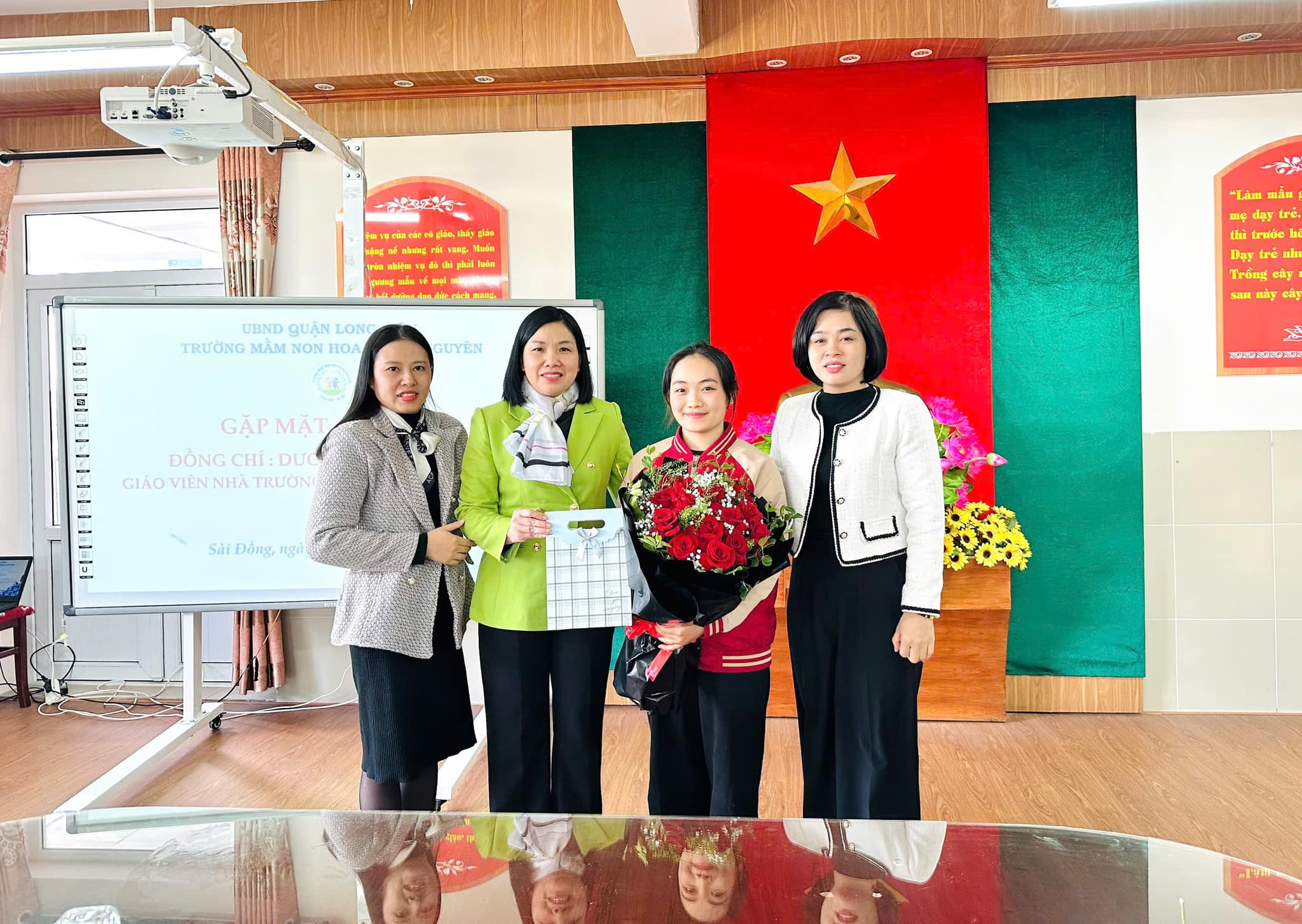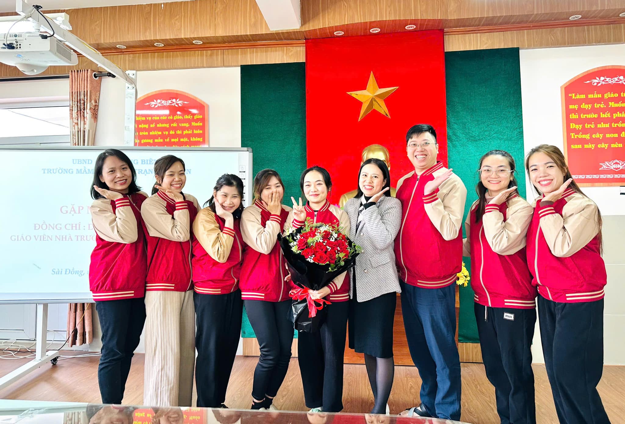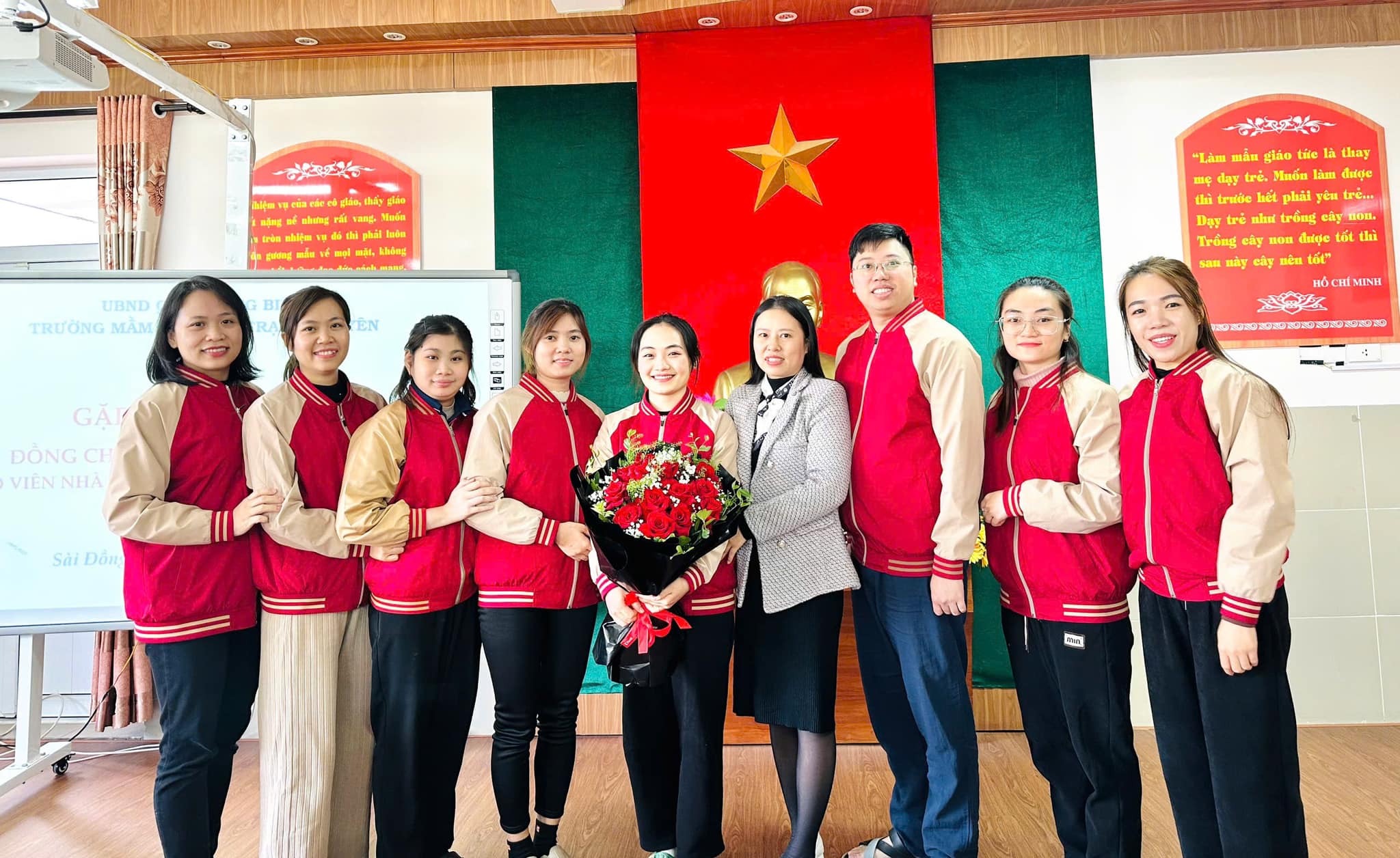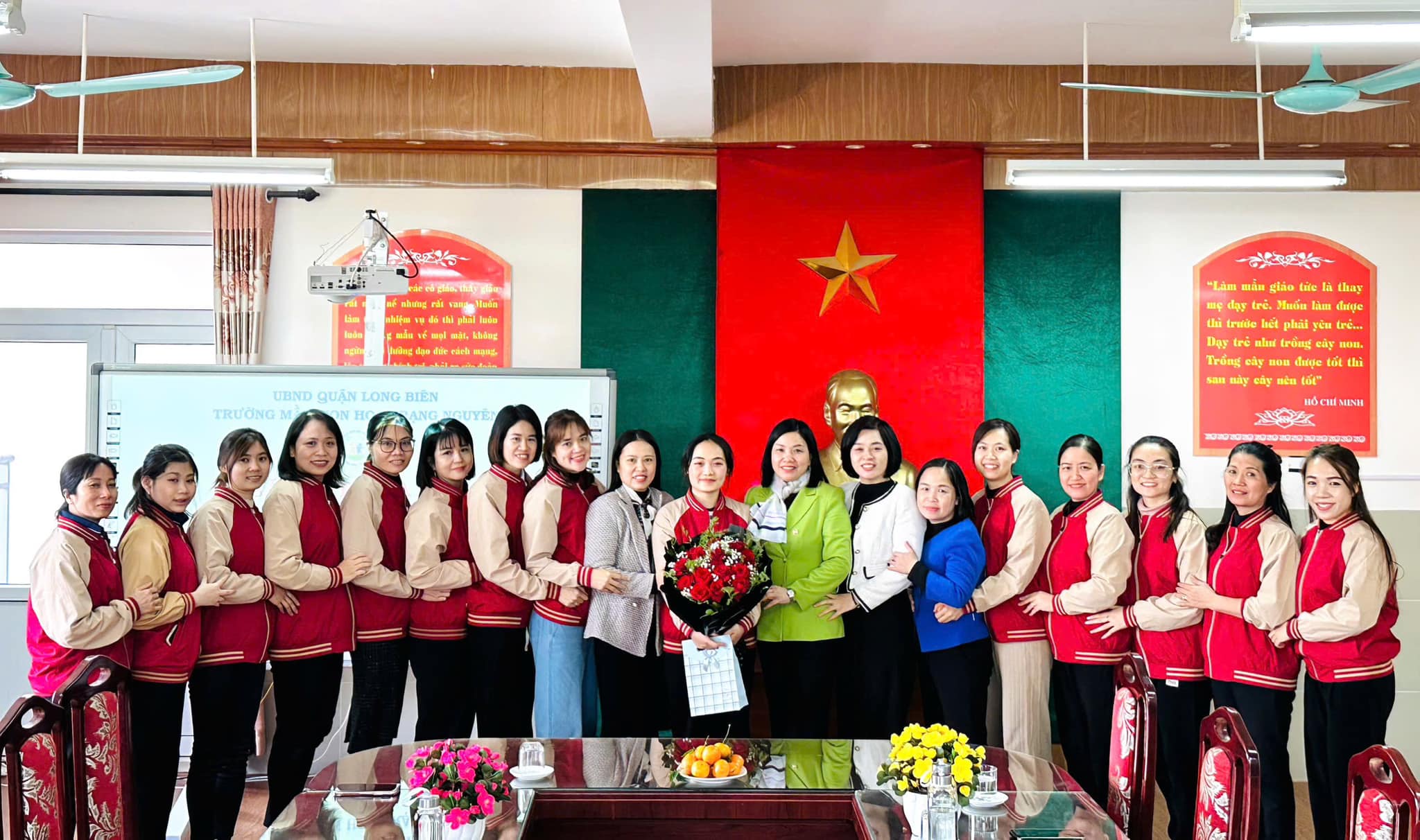 Trái ngược với tiết thời se lạnh của mùa Đông, tại phòng truyền thống nhà trường biết bao nhiêu lưu luyến, yêu thương, xúc động xen lẫn sự tự hào của CBGVNV. Với mong muốn tri ân và lưu giữ lại những kỷ niệm tốt đẹp nhất cùng những lời chúc chân tình của lần lượt các ban nghành đoàn thể: Nhà trường, Công đoàn, Chi đoàn, Ban giám hiệu... đối với đồng chí Nhật. Thân tặng đồng chí những bó hoa tươi thắm, những món quà giản dị mà tràn đầy ý nghĩa, nhắn gửi đồng chí sang đơn vị mới luôn nhớ mãi về ngôi trường Mầm non Hoa Trạng Nguyên thân yêu.