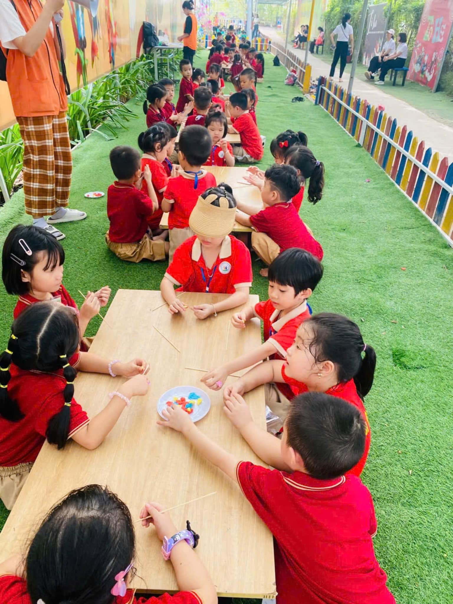 “Chuyến tham quan học tập dã ngoại lần này nằm trong khuôn khổ kế hoạch năm học 2024-2025 của nhà trường, mục tiêu cho trẻ làm quen, khám phá thế giới xung quanh một cách thú vị và bổ ích. Đây là buổi học trải nghiệm dã ngoại nhà trường đã tổ chức trong học kỳ 1. Có 9 lớp trong độ tuổi mầm non: 3 lớp lớn, 3 lớp nhỡ, 3 lớp bé đều tham gia chuyến trải nghiệm; các con trong độ tuổi nhà trẻ ở lại trường sinh hoạt bình thường”.