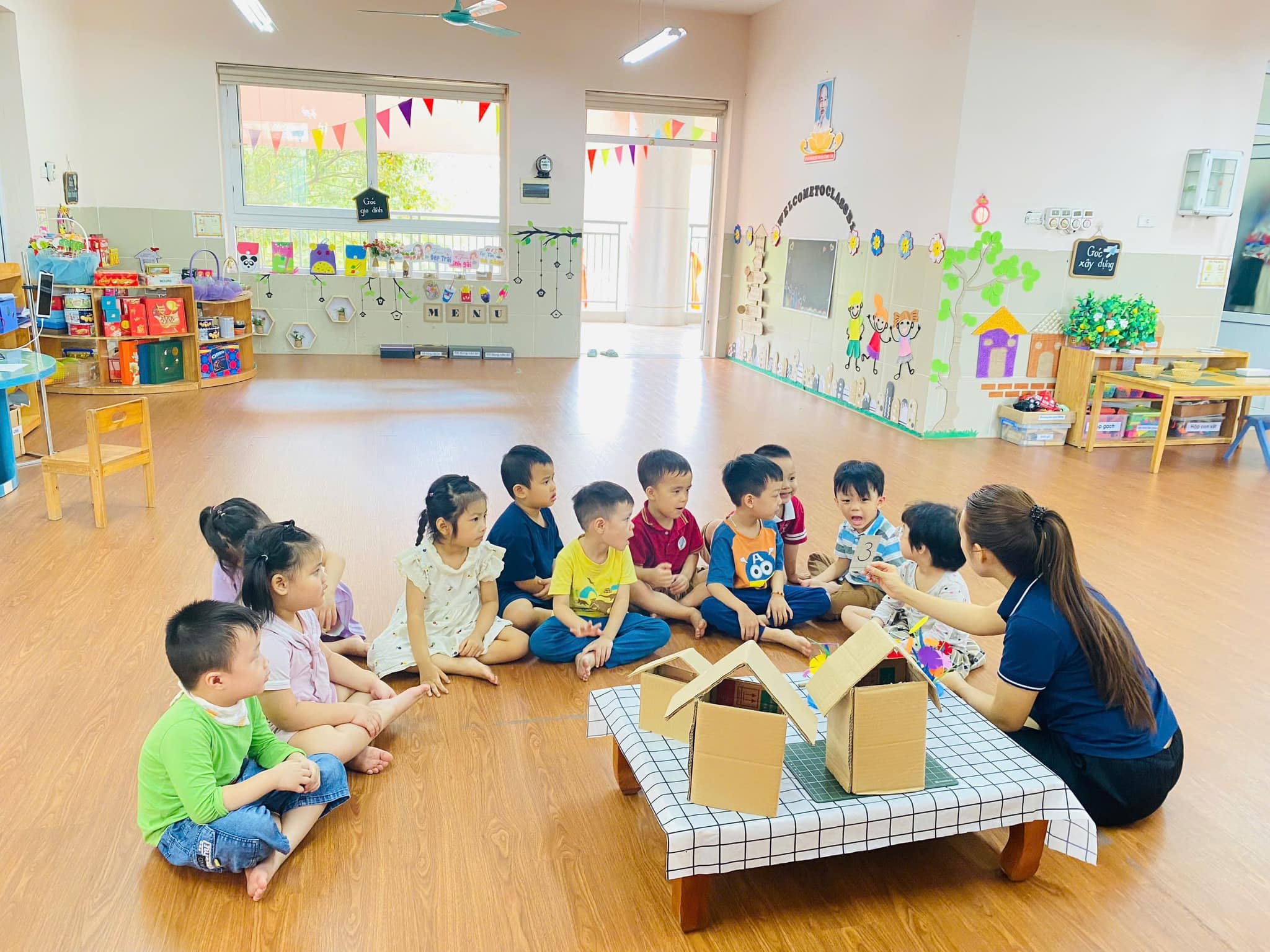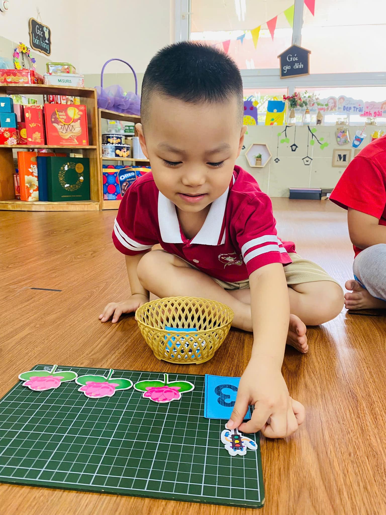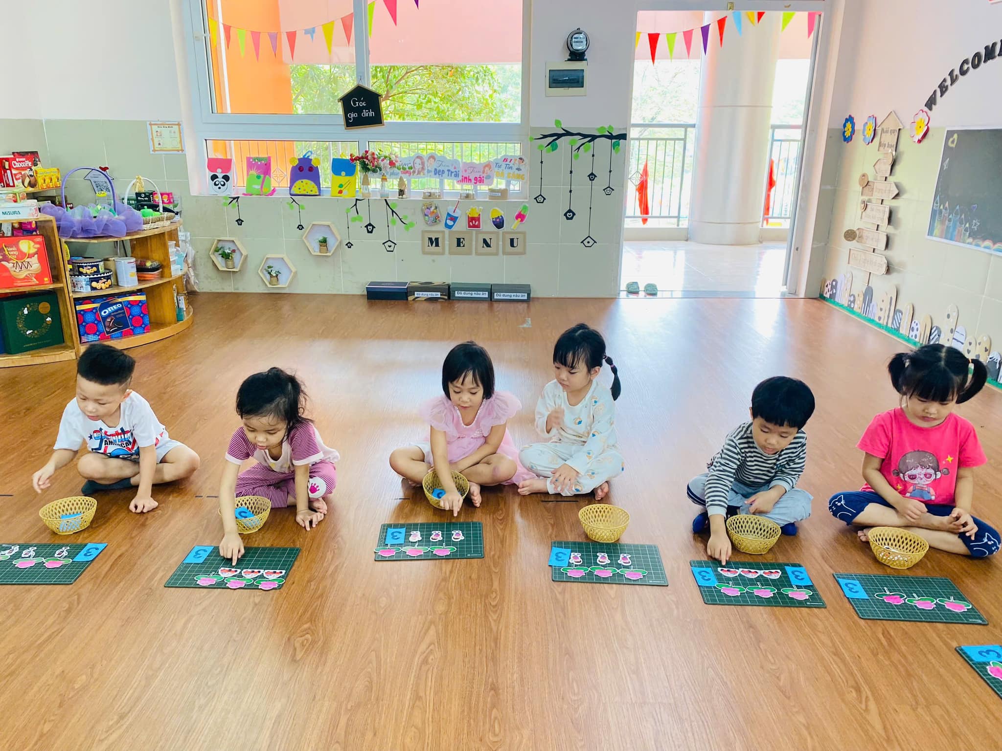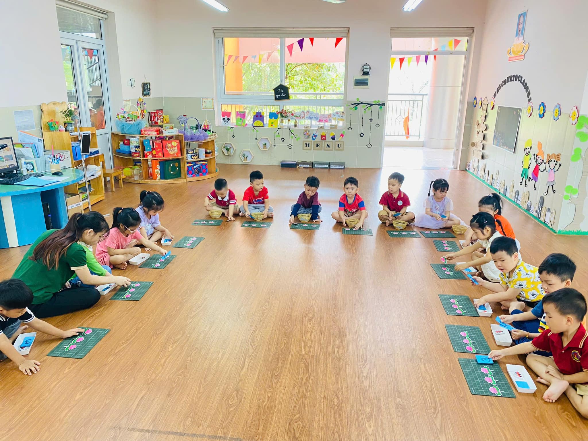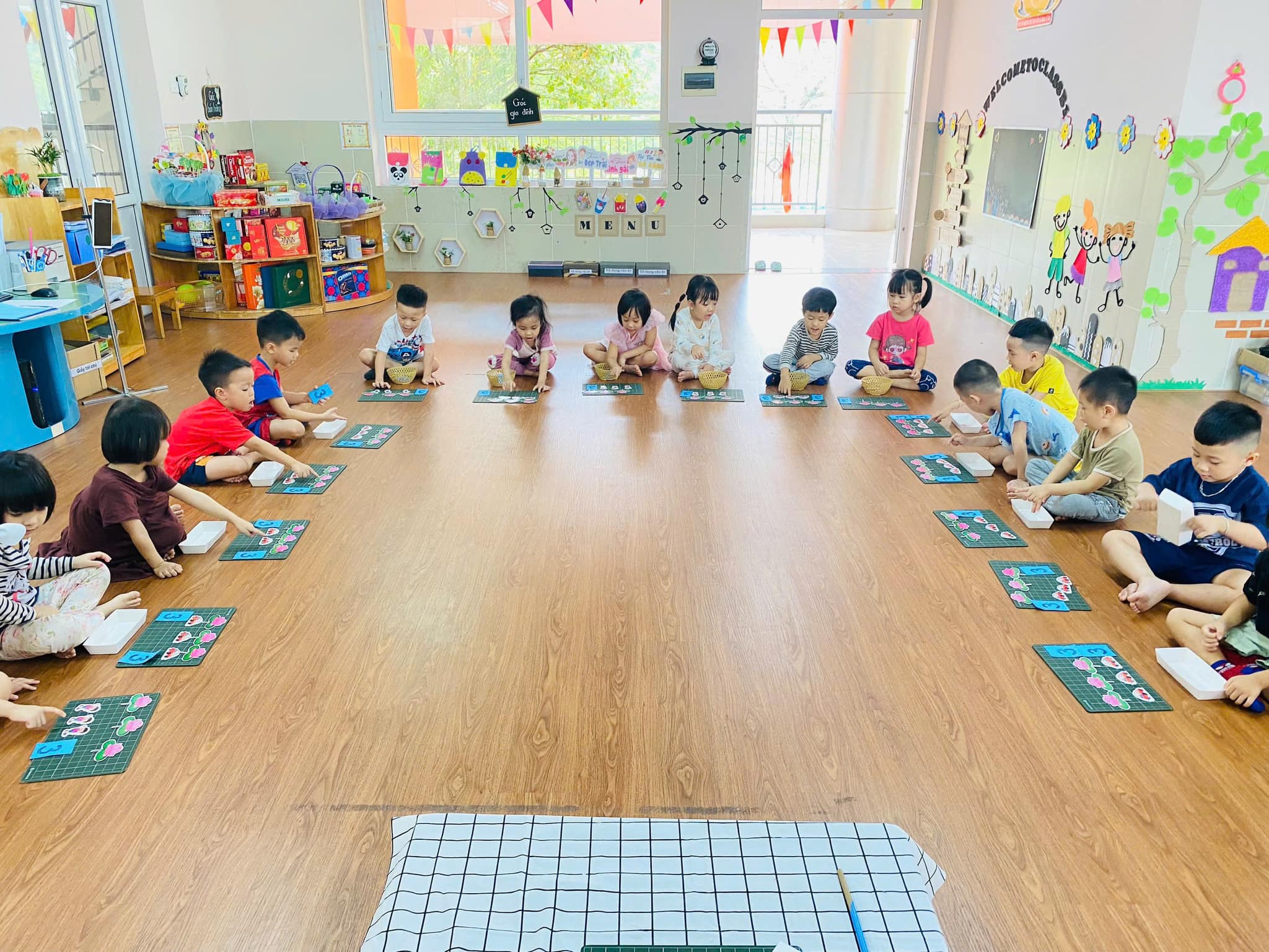 Trong giờ học, trẻ được cô giáo hướng dẫn cụ thể, chính xác về cách xếp, nhận biết, đếm,….