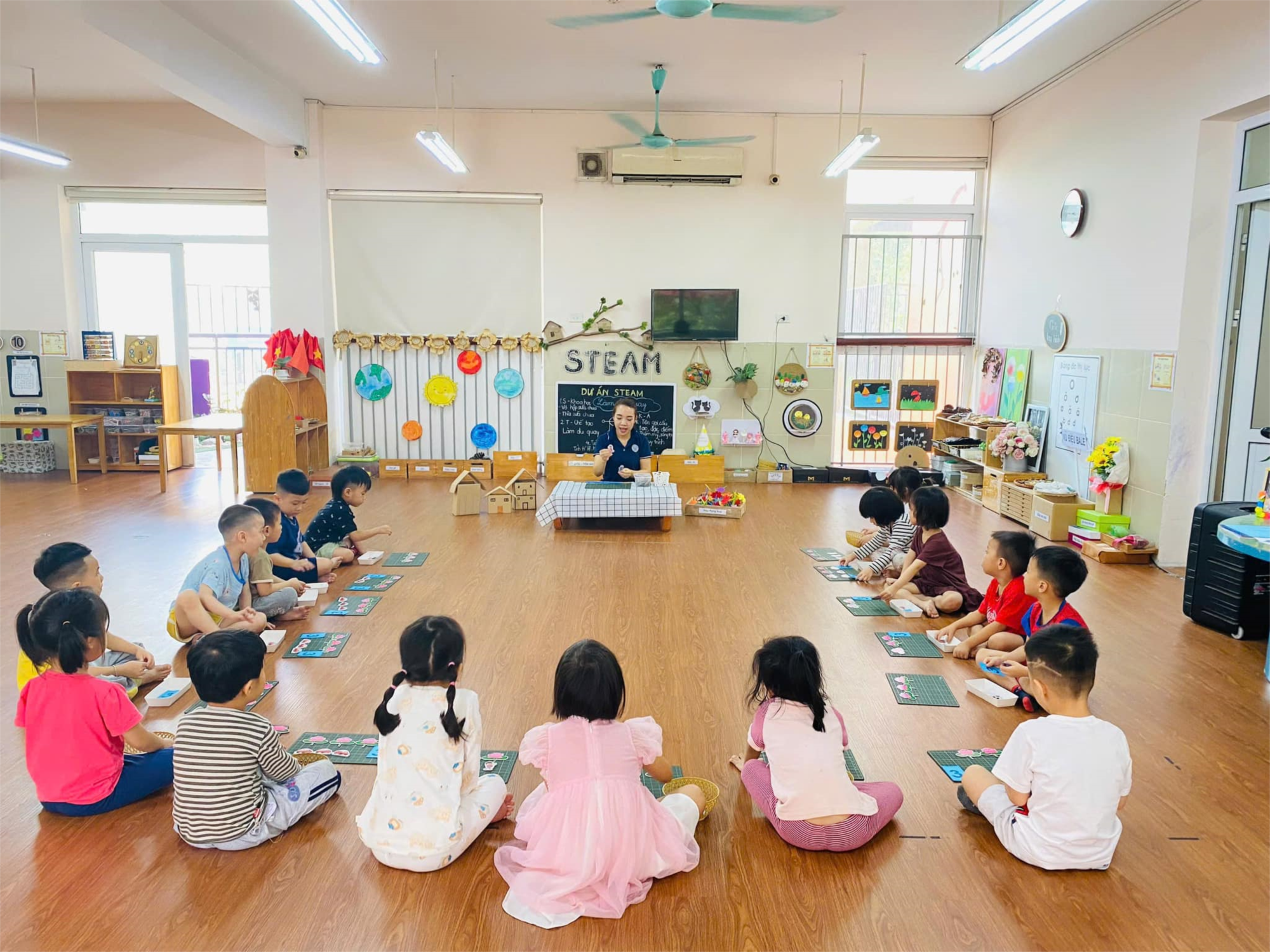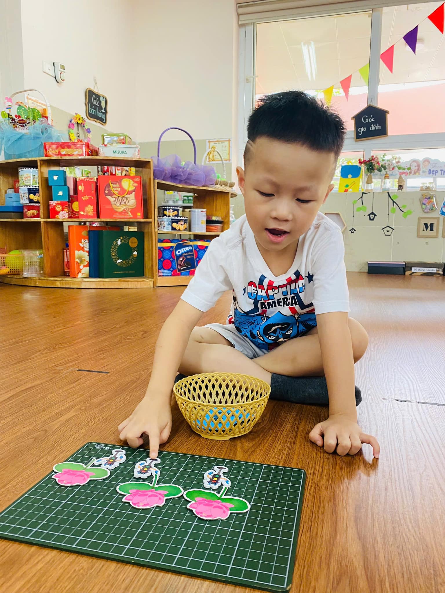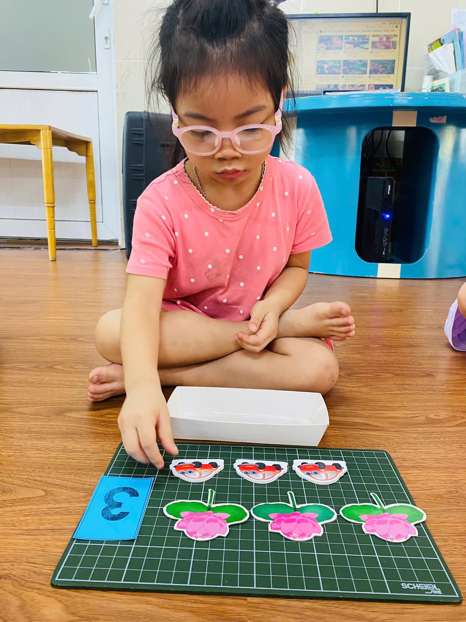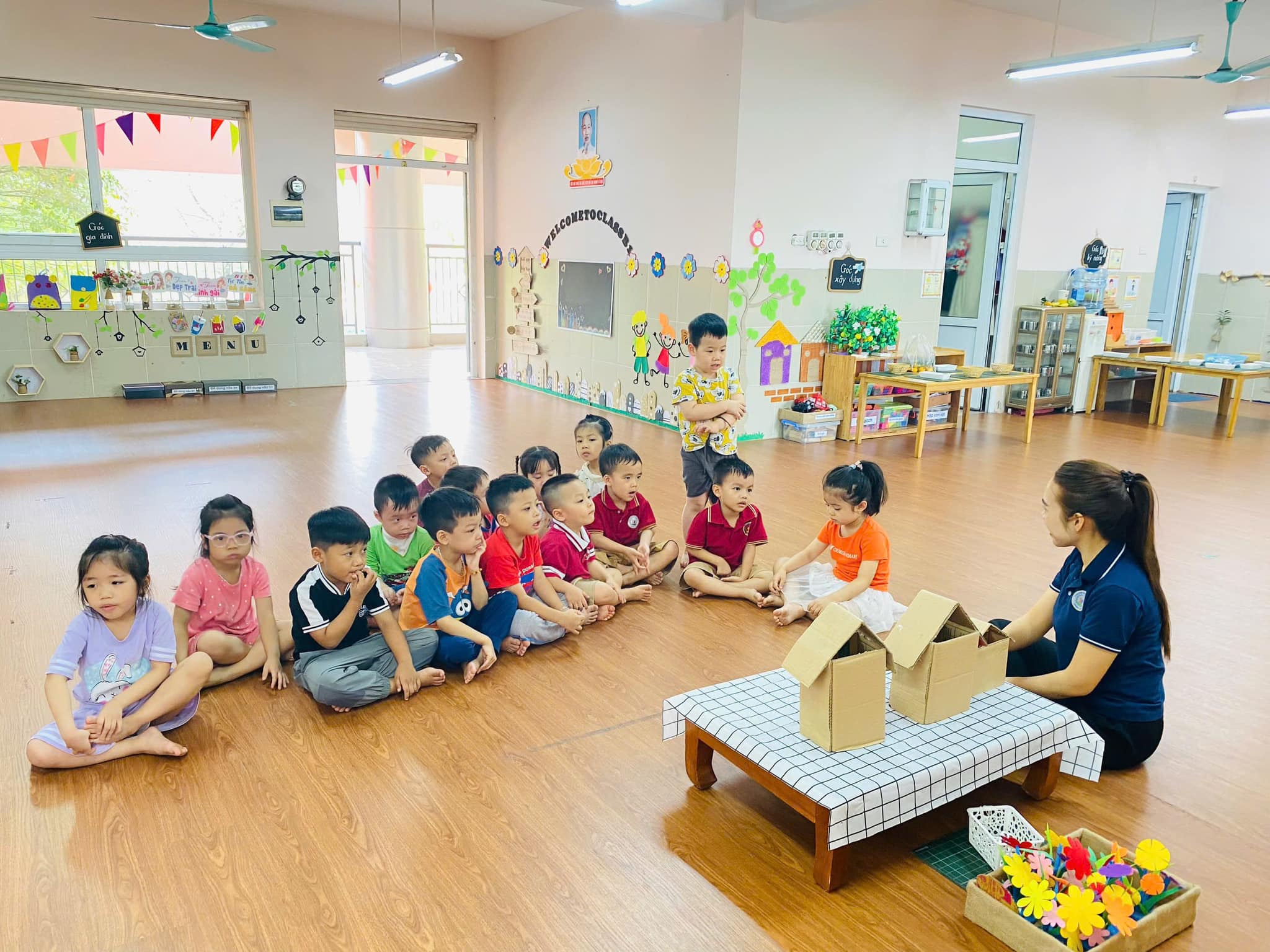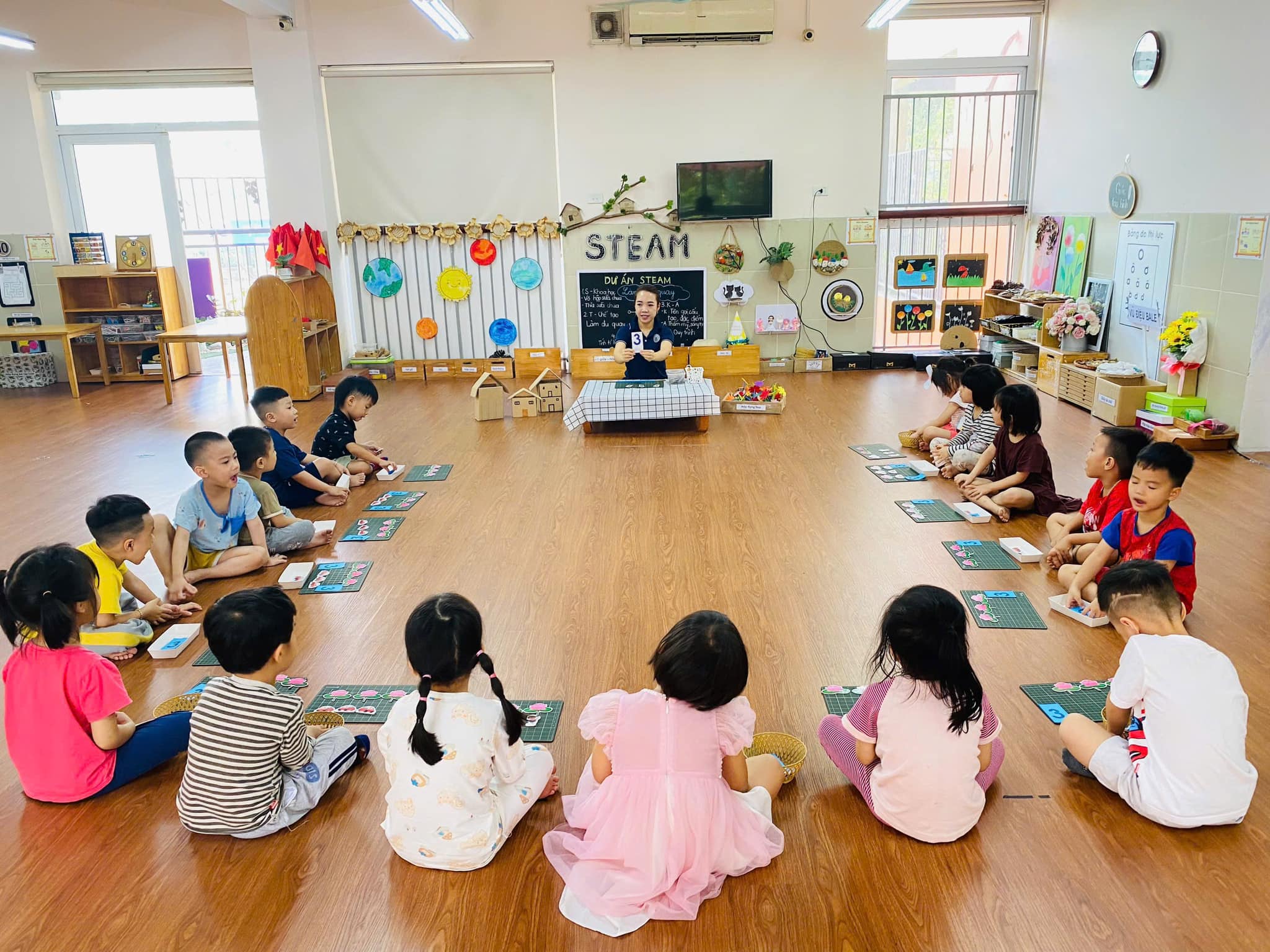 Trong giờ học, trẻ được cô giáo hướng dẫn cụ thể, chính xác về cách xếp, nhận biết, đếm,….