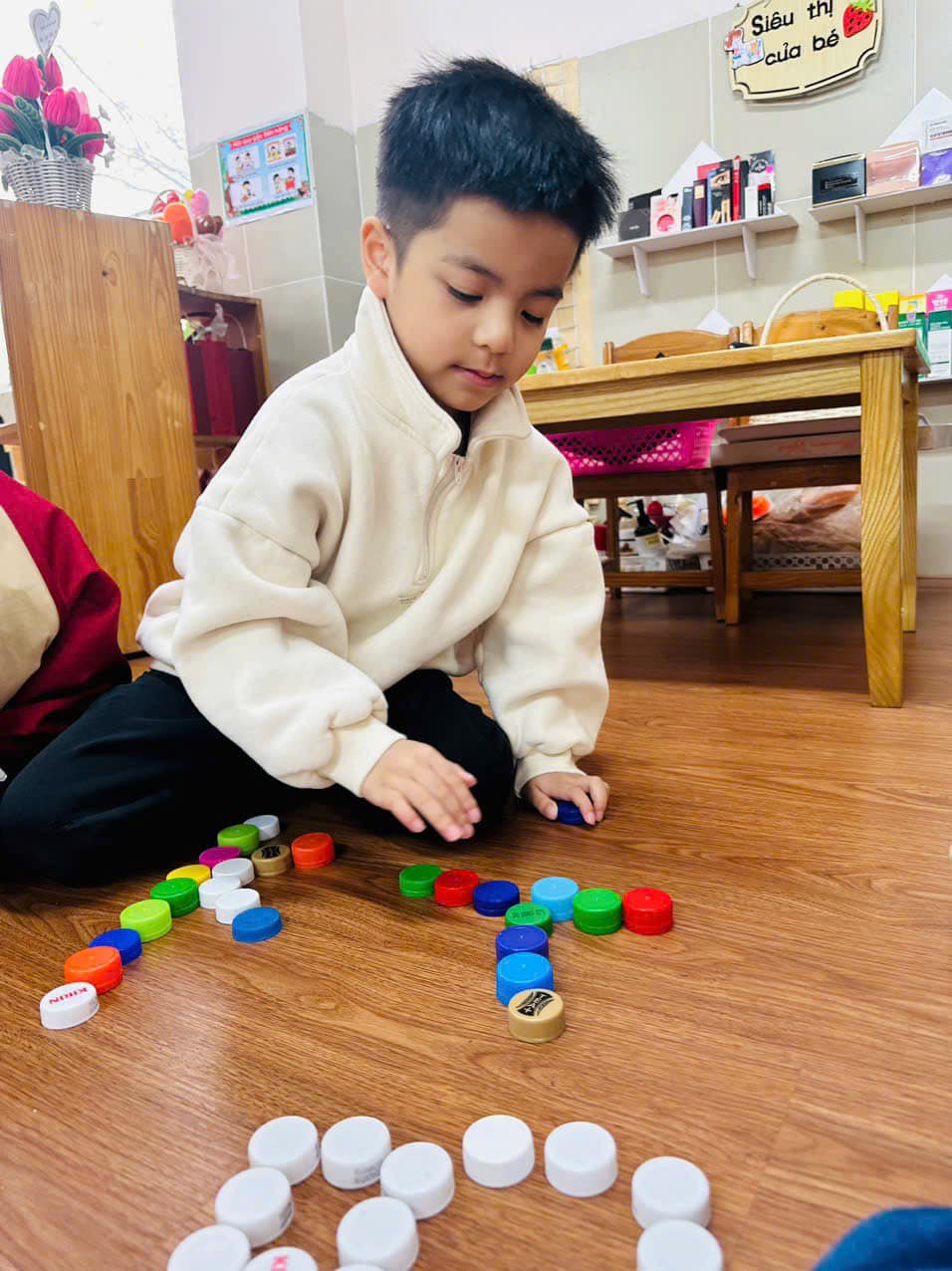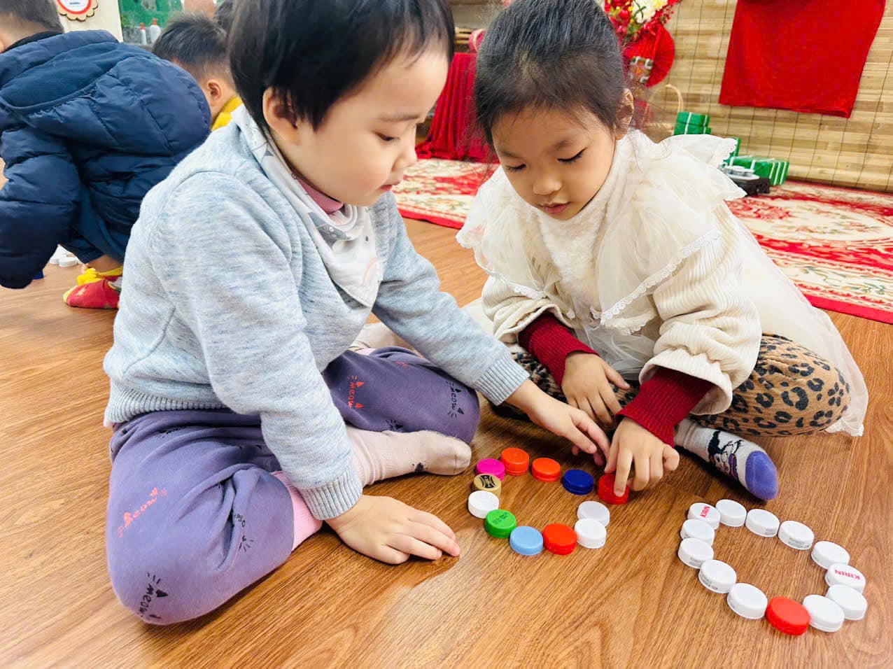 Các bé MGN B3 thực hiện kỹ năng thảo luận, sắp xếp, có sự khéo léo và tỉ