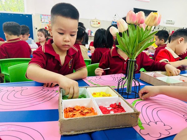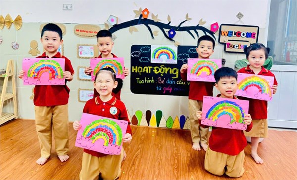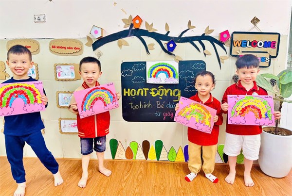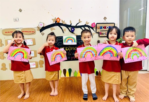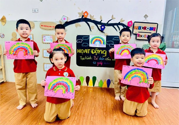 Tập ảnh : 🌈 Hoạt động tạo hình: “ Bé dán cầu vồng từ giấy màu” - Lớp MGN B3