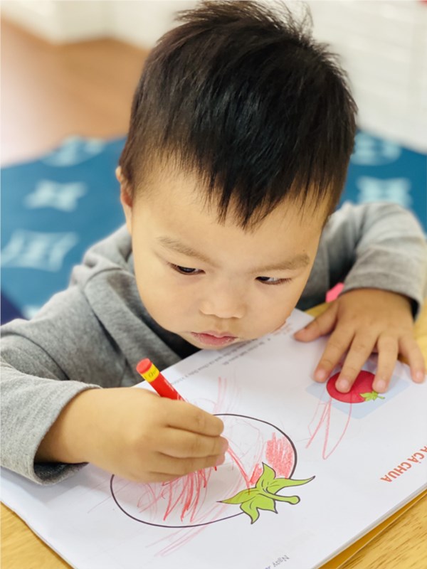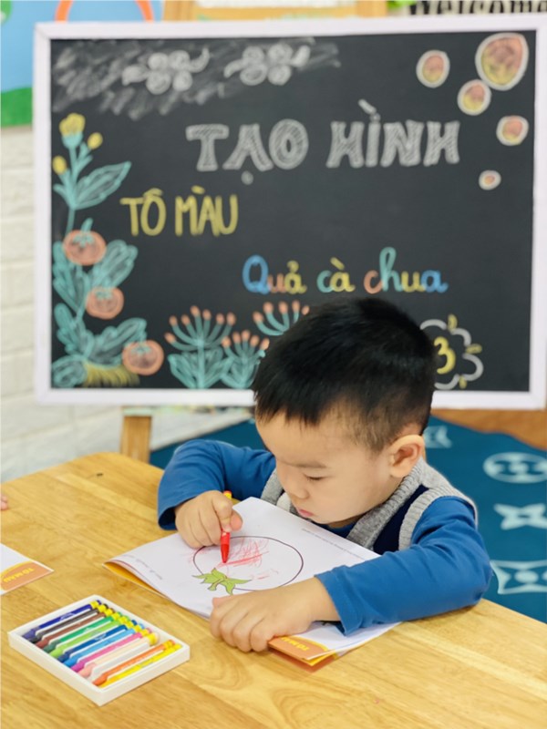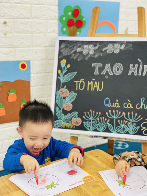 Tập ảnh : Hoạt động tạo hình : Tô màu quả cà chua của cô và các bé lớp NT D3