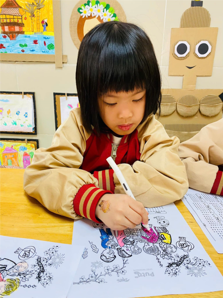 Hoạt động tô màu máy bay của các bé lớp MGB C2