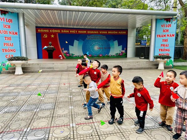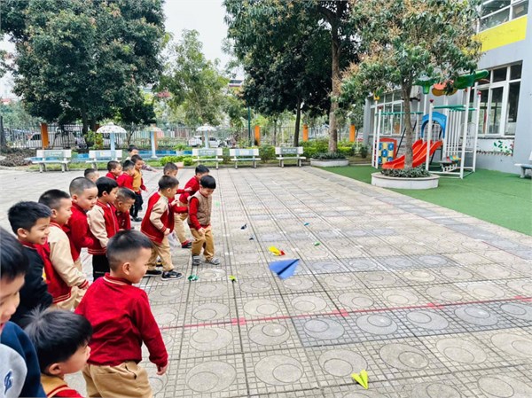 Hoạt động trải nghiệm gấp máy bay của cô và trò lớp MGN B3