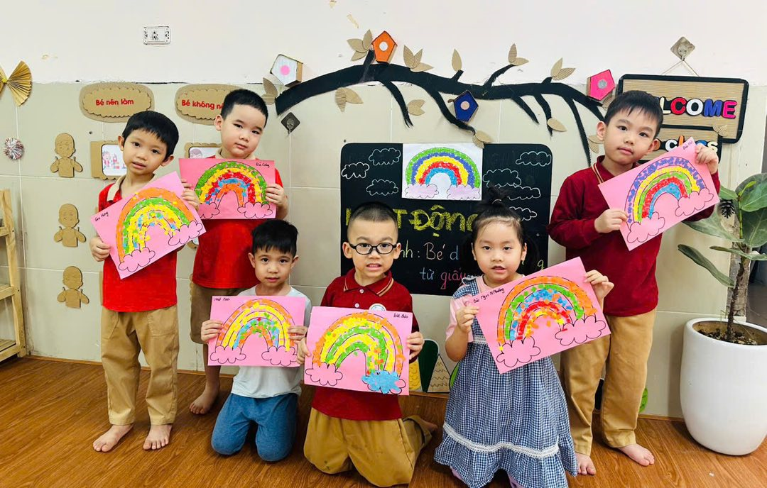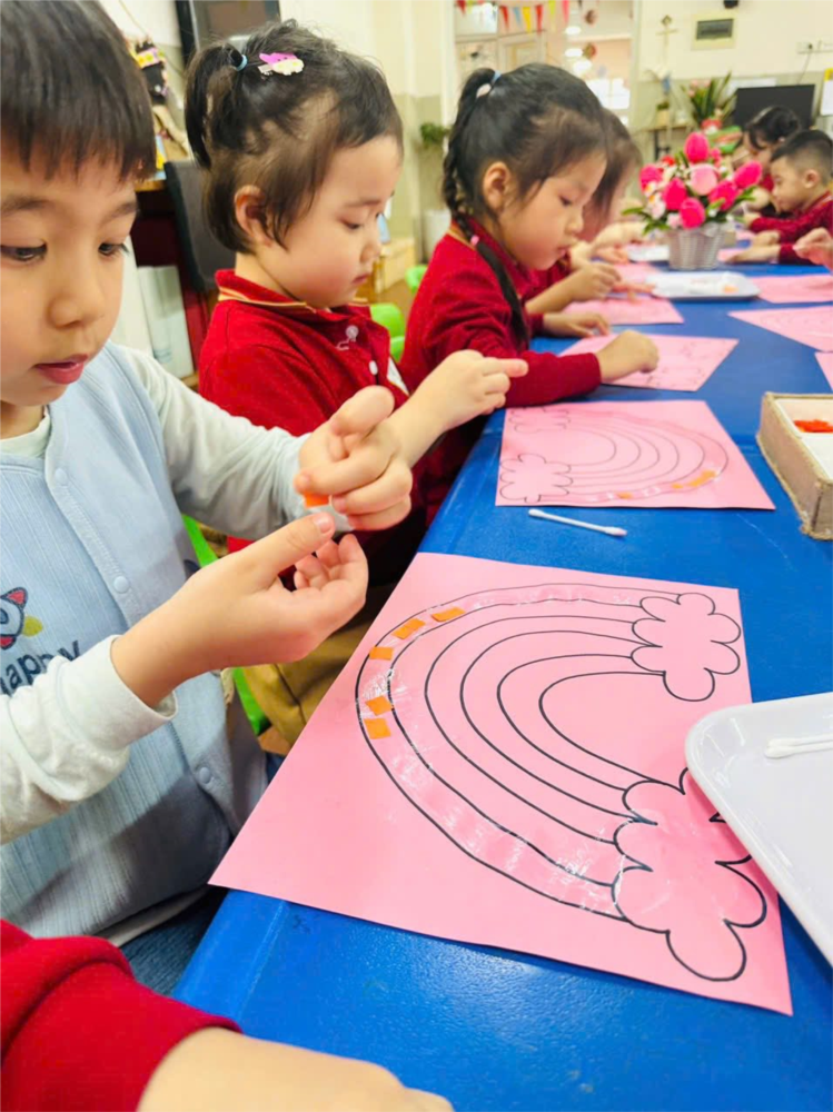 🌈 Hoạt động tạo hình: “ Bé dán cầu vồng từ giấy màu” - Lớp MGN B3