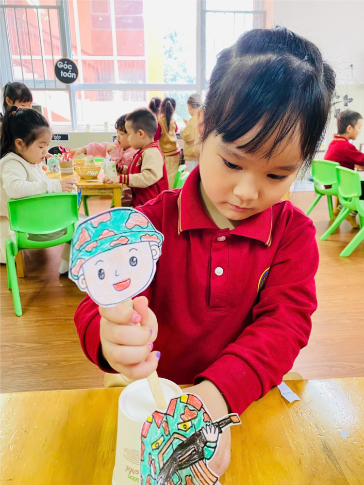 Hoạt động: "Tạo hình chú bộ đội từ cốc giấy" lớp MGL A1