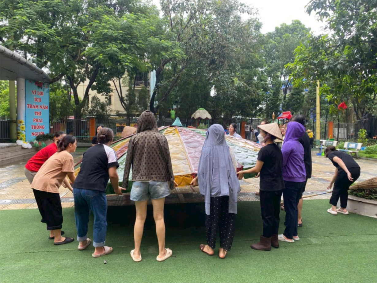 CBGVNV trường MN Hoa Trạng Nguyên chung tay khắc phục hậu quả cơn bão số 3
