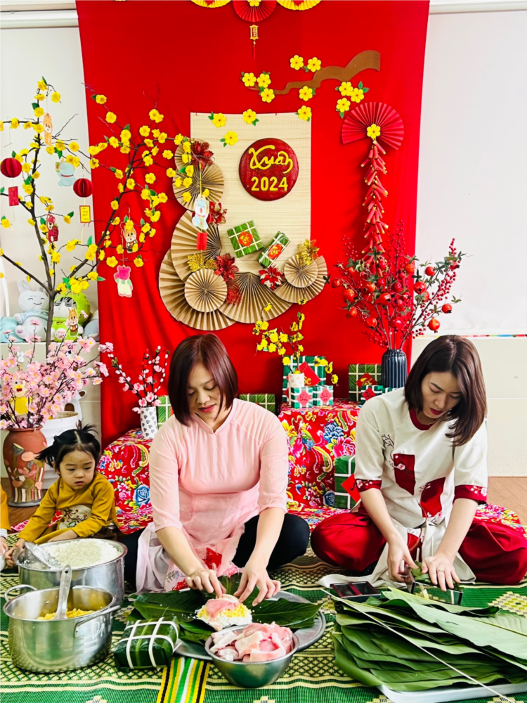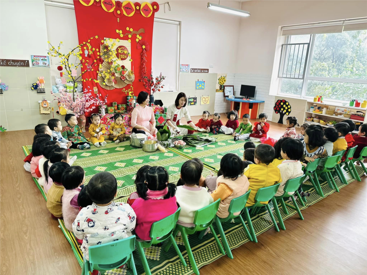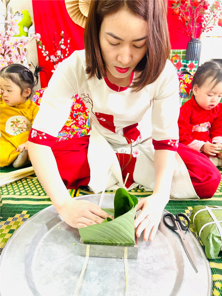 Ngày hội " Gói bánh chưng" của trường mầm non Hoa Trạng Nguyên