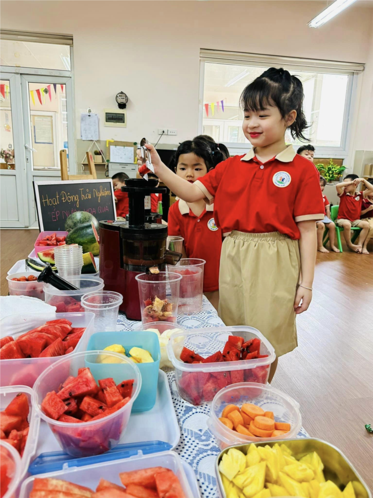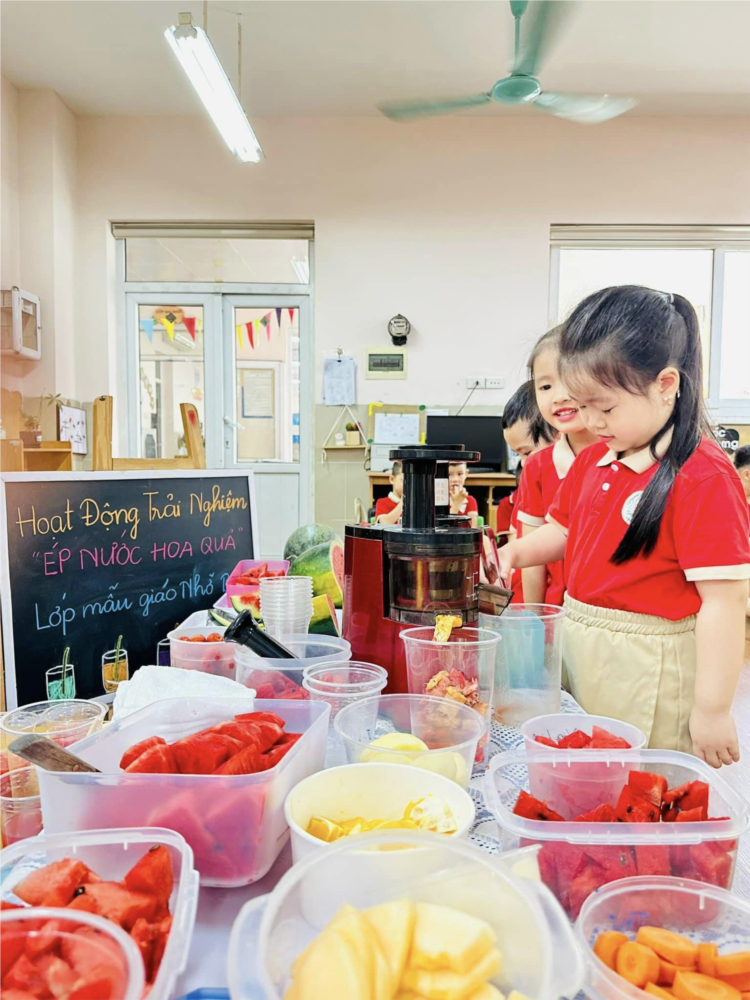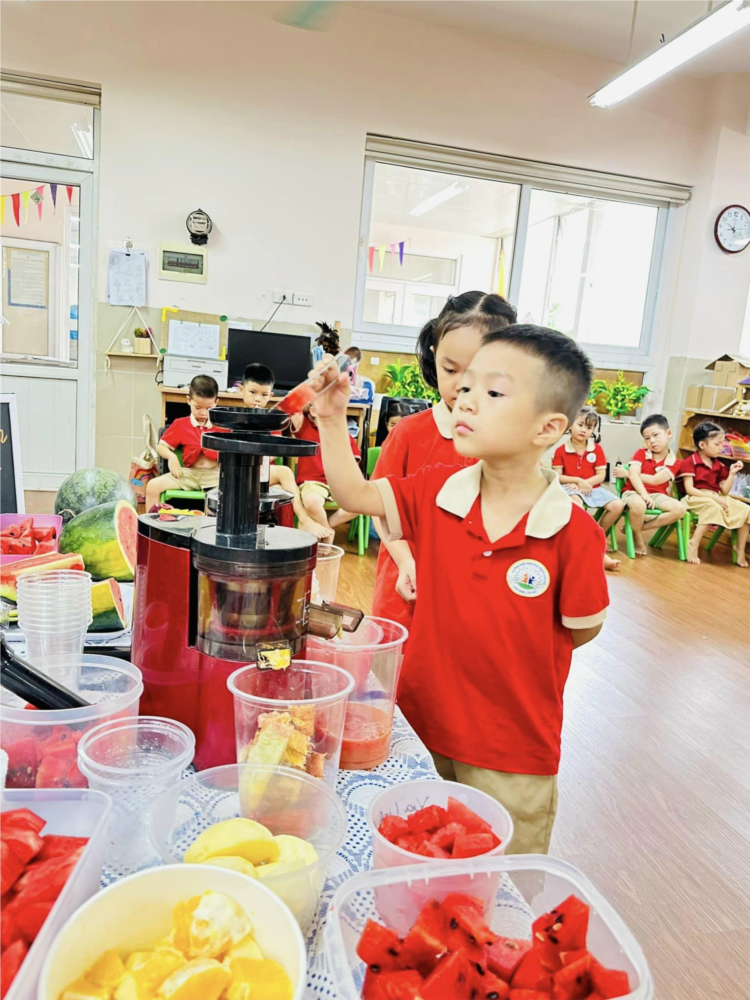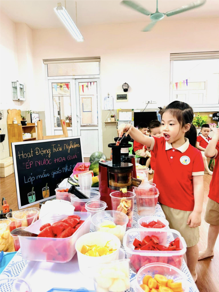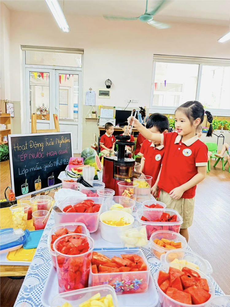 Hoạt động trải nghiệm: " Ép nước hoa quả” của lớp mẫu giáo nhỡ B3