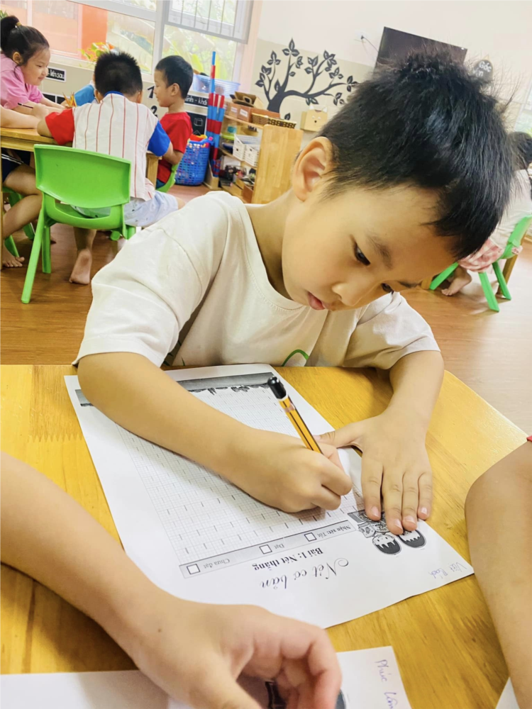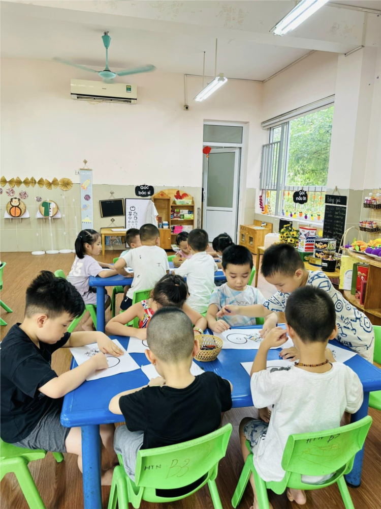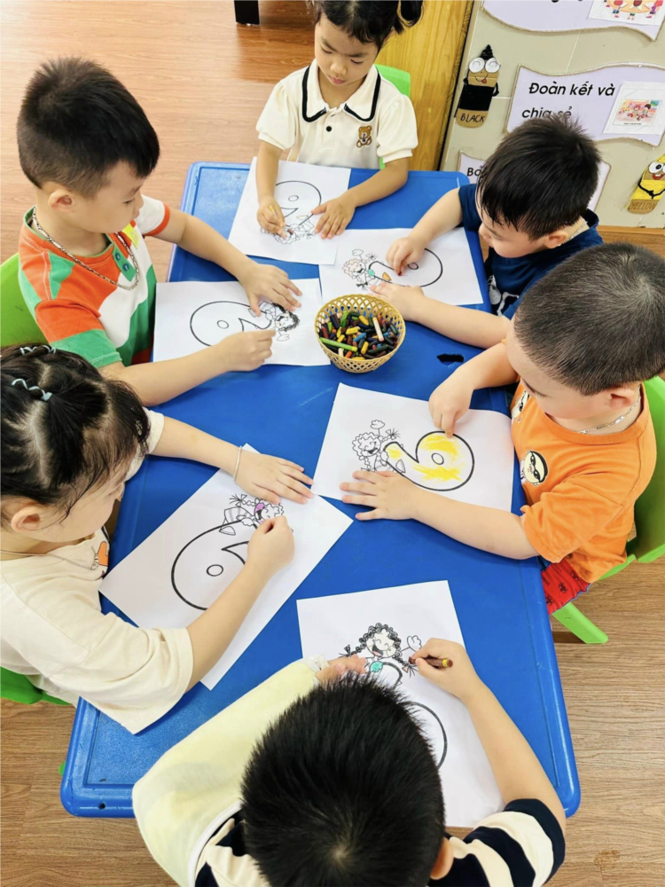 Giờ học Tập tô nét thẳng của các bạn khối MGL