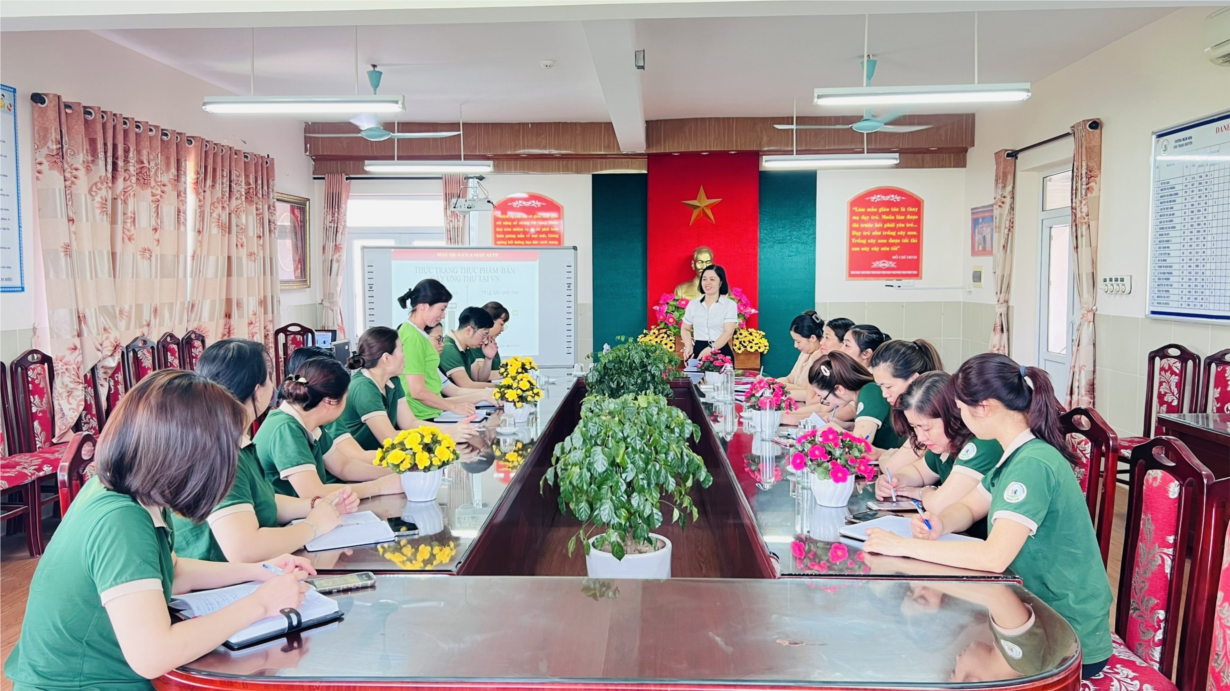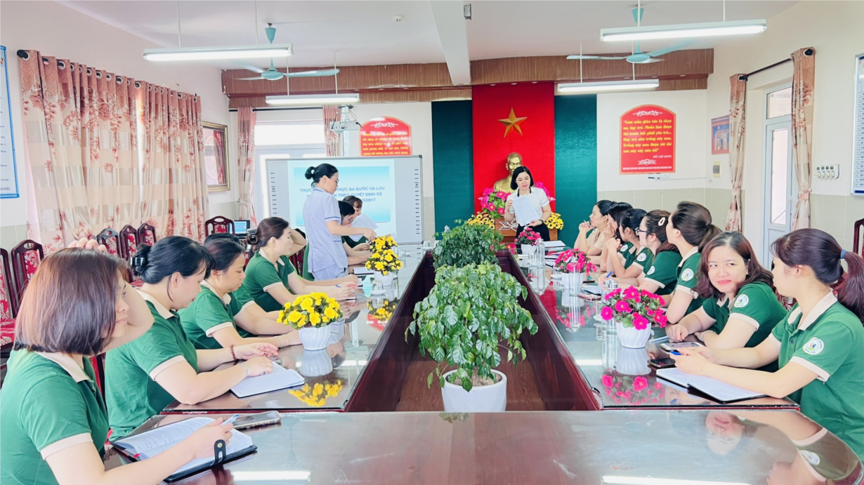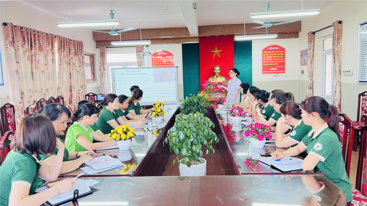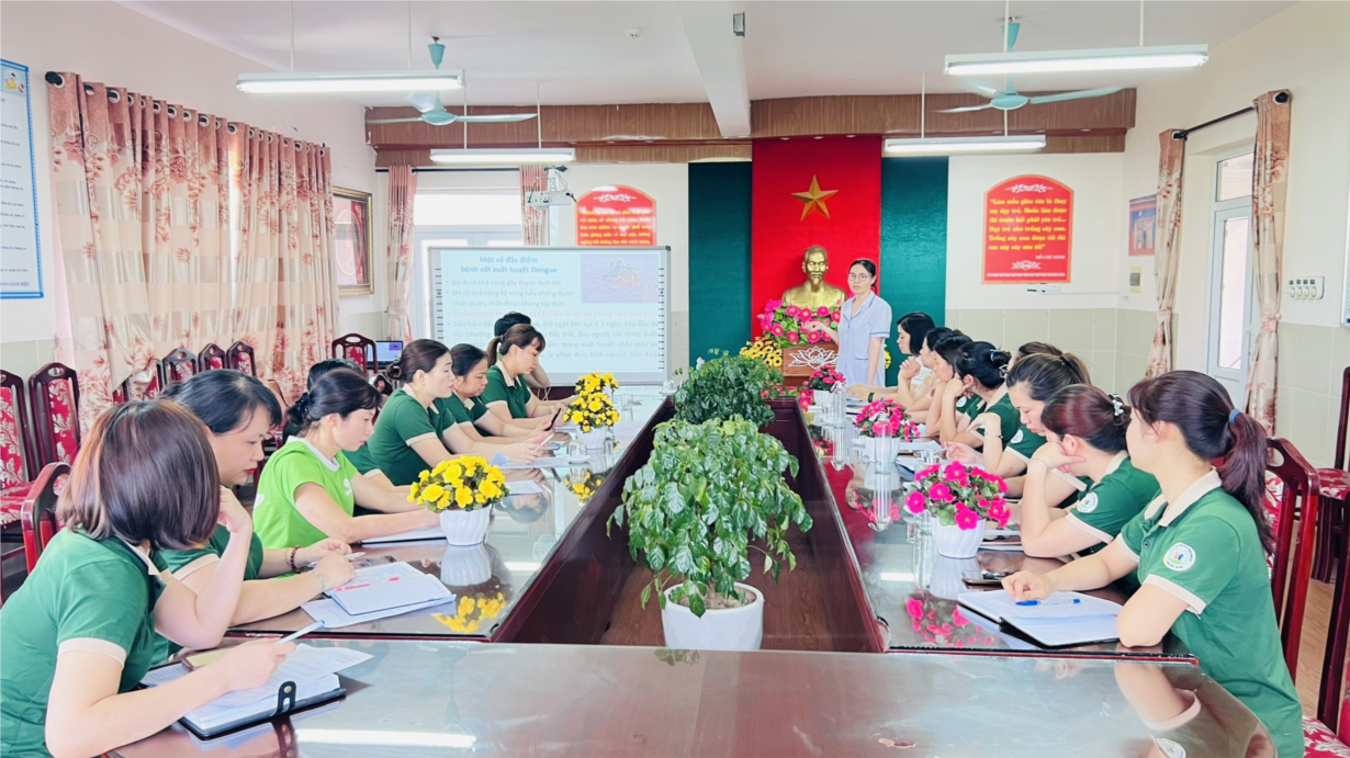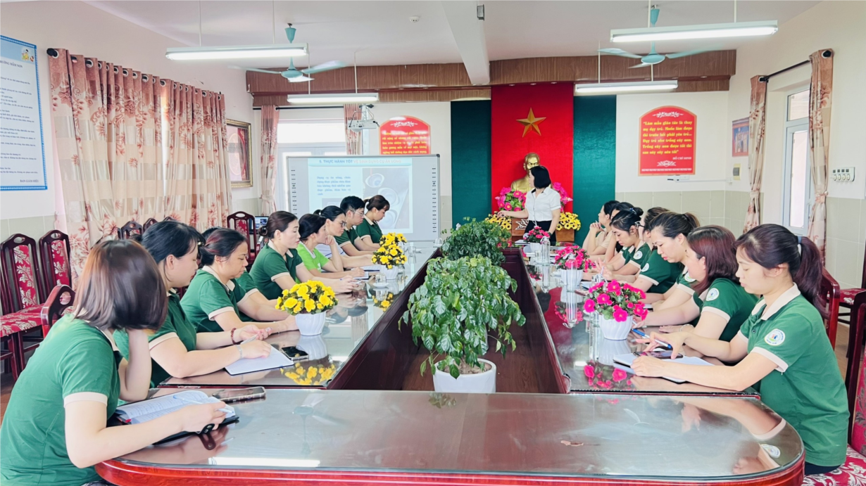 Trường Mầm non Hoa Trạng Nguyên tổ chức tập huấn kiến thức công tác vệ sinh phòng chống dịch bệnh tới tập thể CBGVNV trong nhà trường.